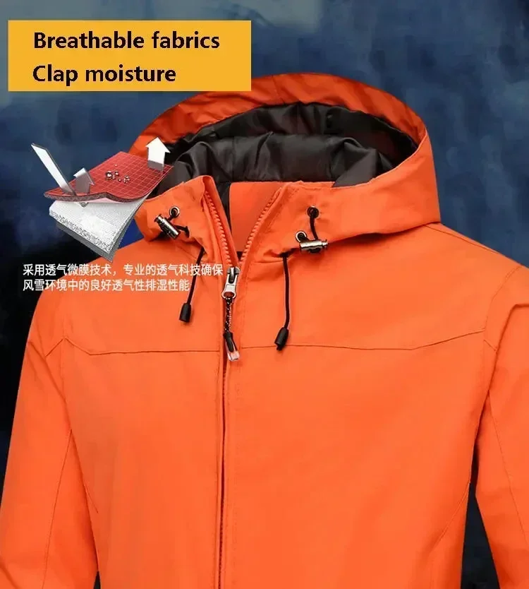 2025 Men's waterproof jacket, men's heat hunter, camouflage bomber jacket with hood, high-quality men's jacket