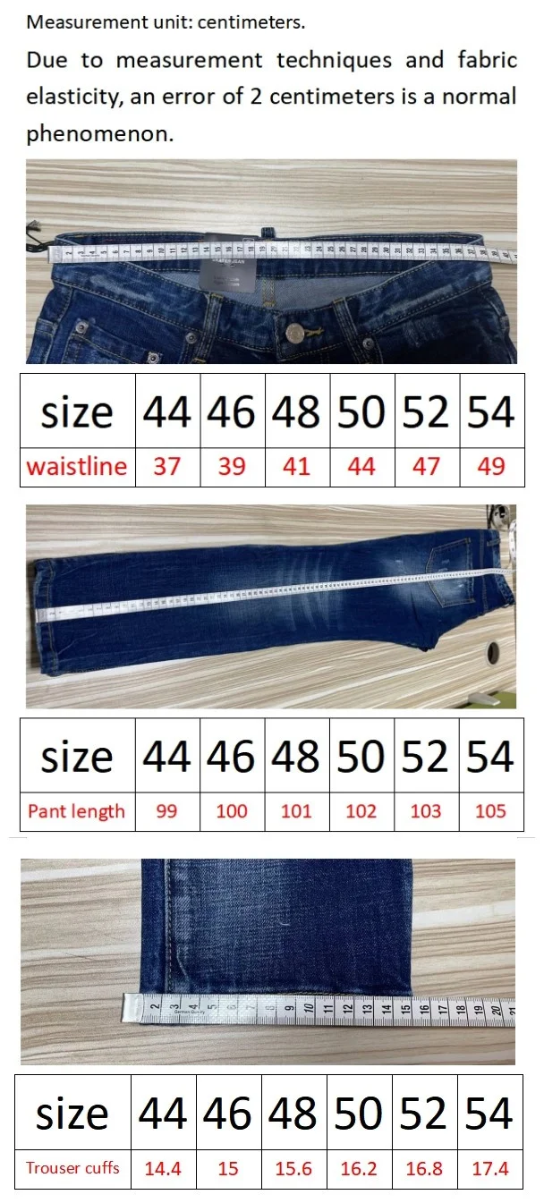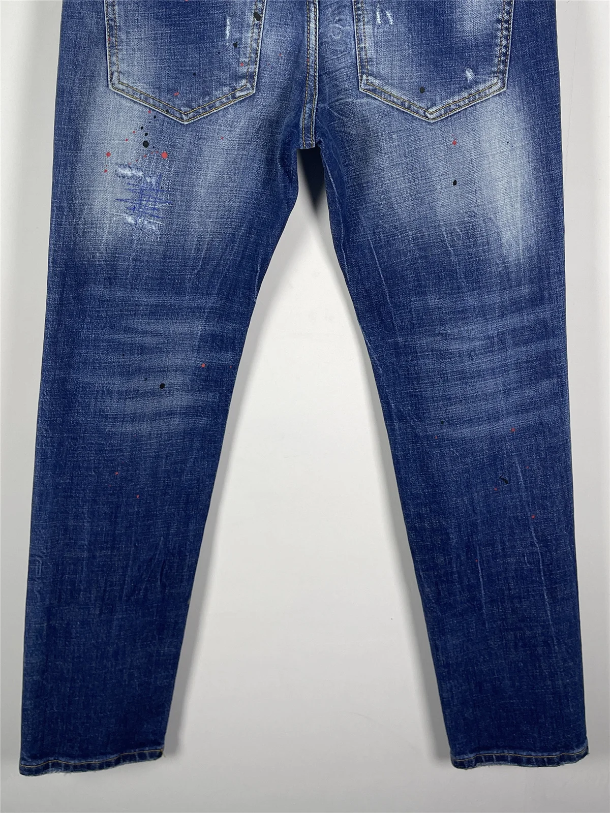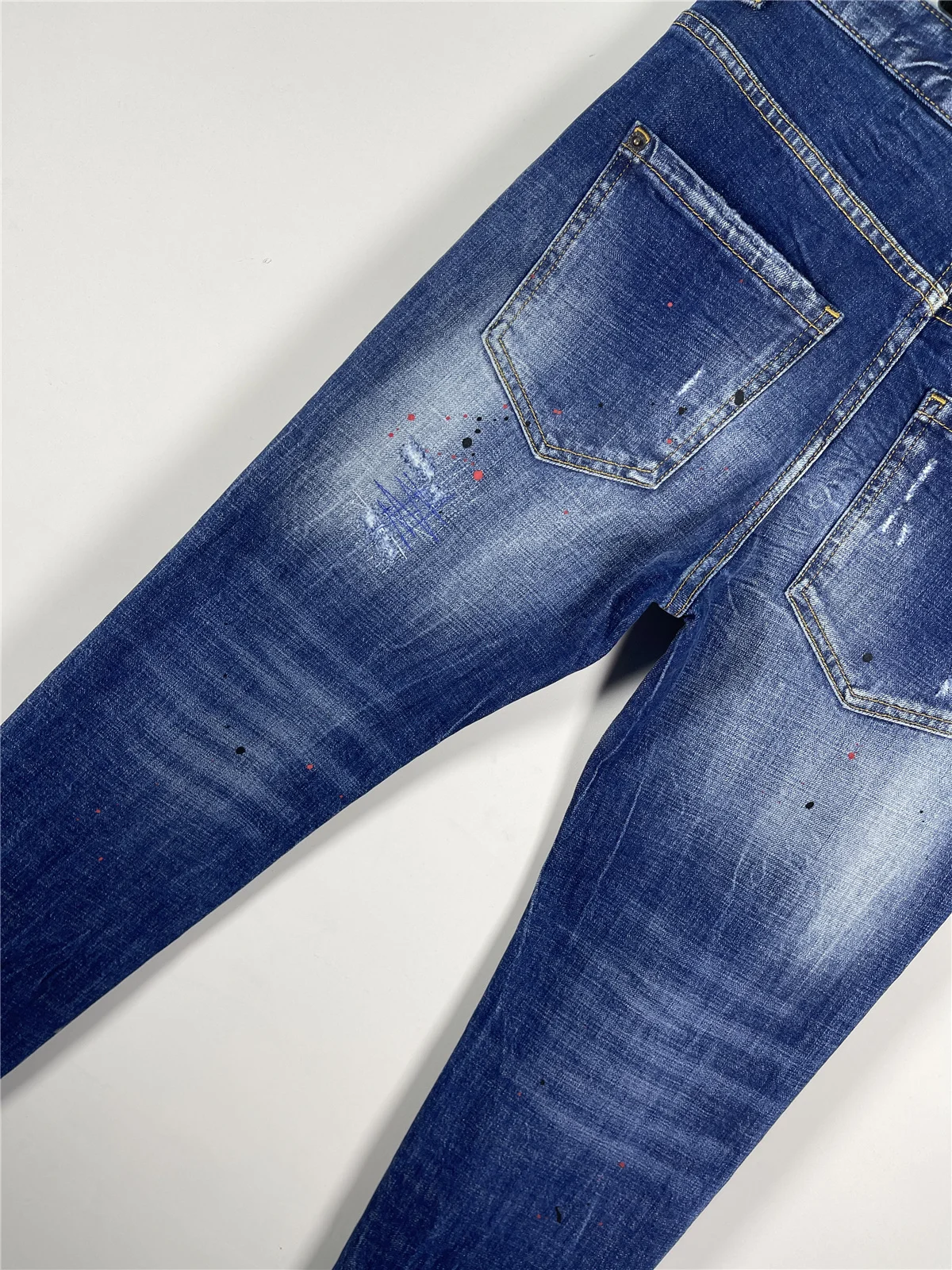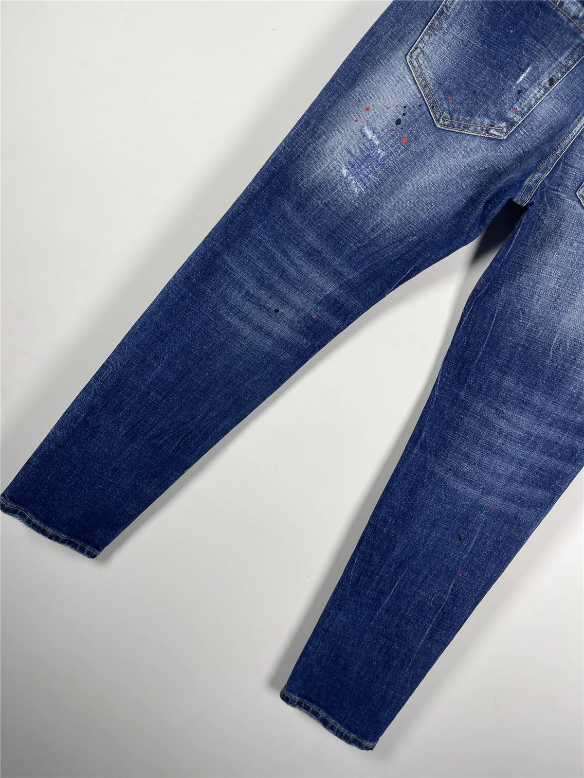 2025 Spring/Summer New D2 Jeans for Men, Washed, Scratched, Patched, Painted, Three Dimensional Cutting, Small Feet, Blue