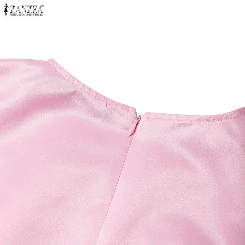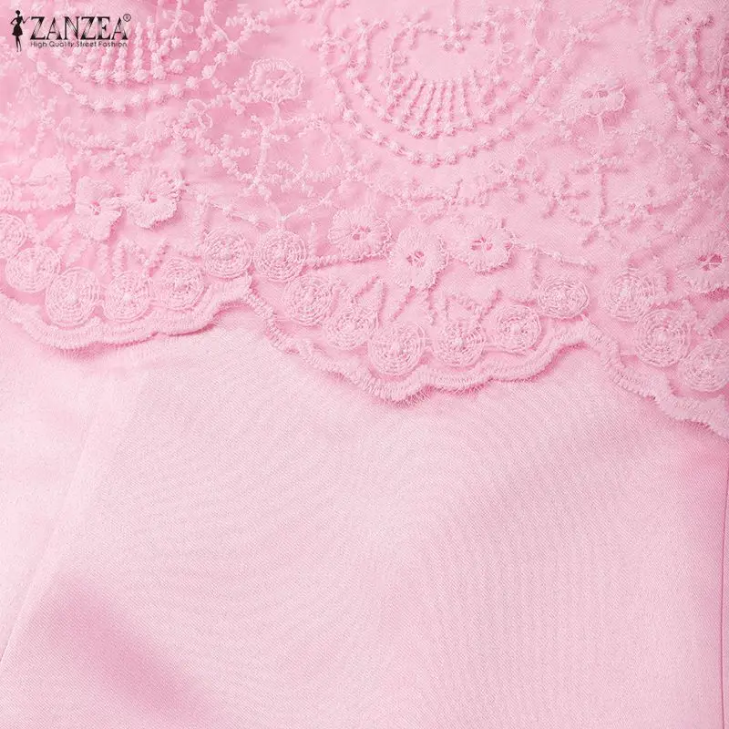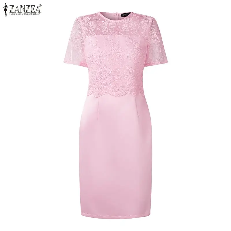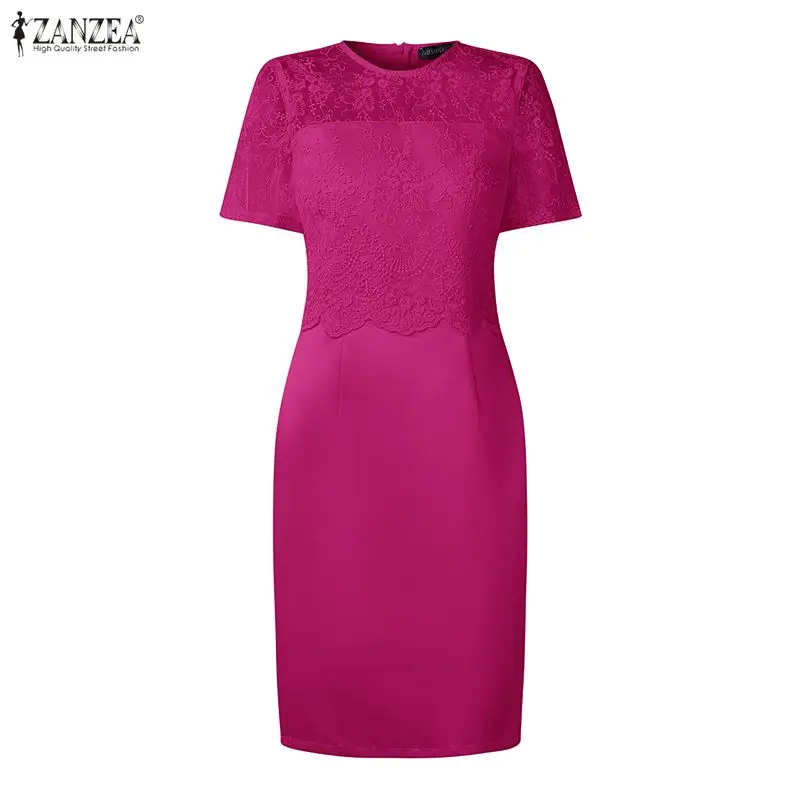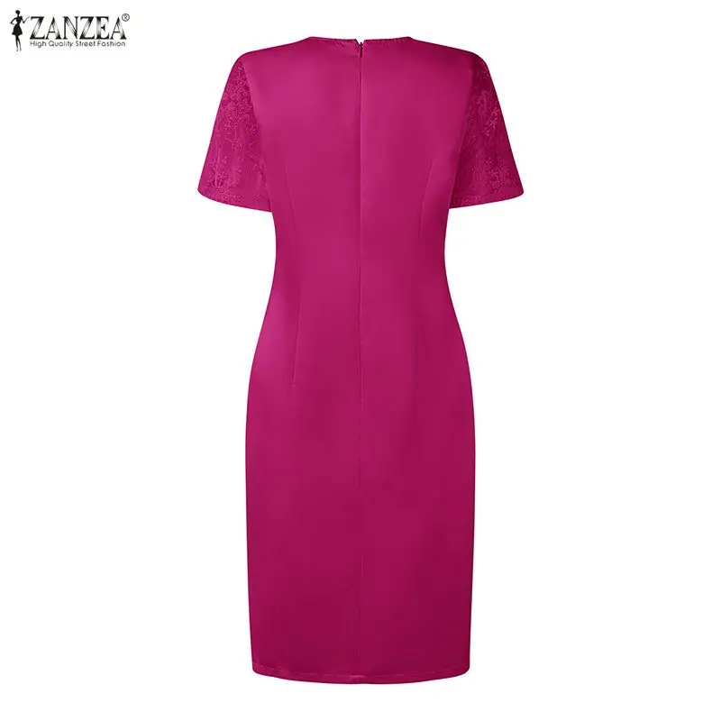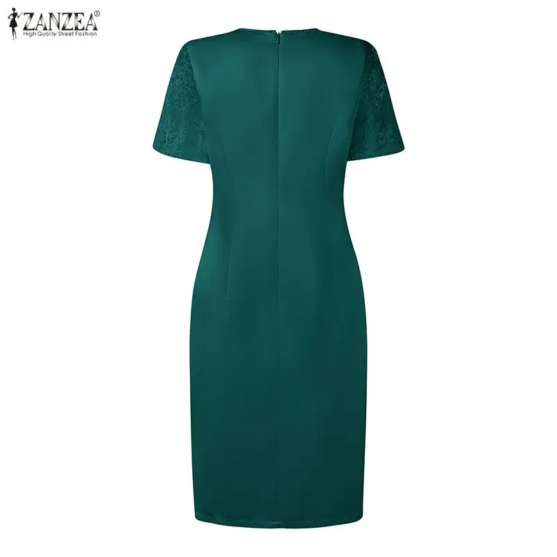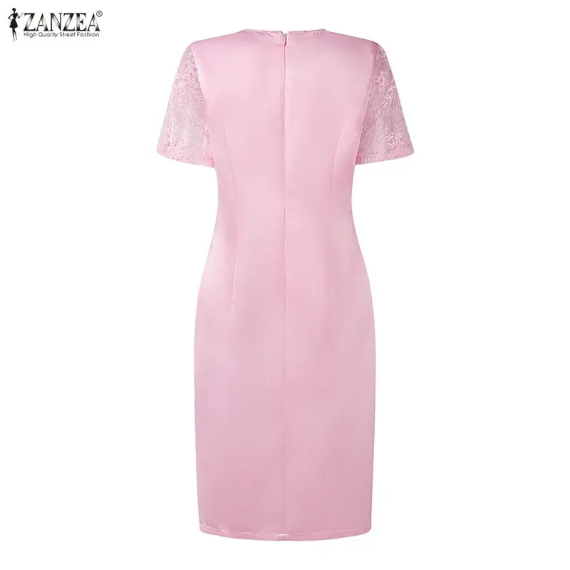 2025 ZANZEA Summer Lace Patchwork Dresses Elegant Stylish Party Dress Women Short Sleeve Slim Fit Sundress Solid Satin Midi Robe