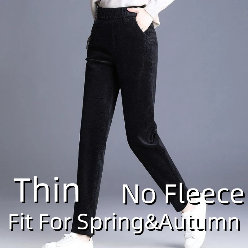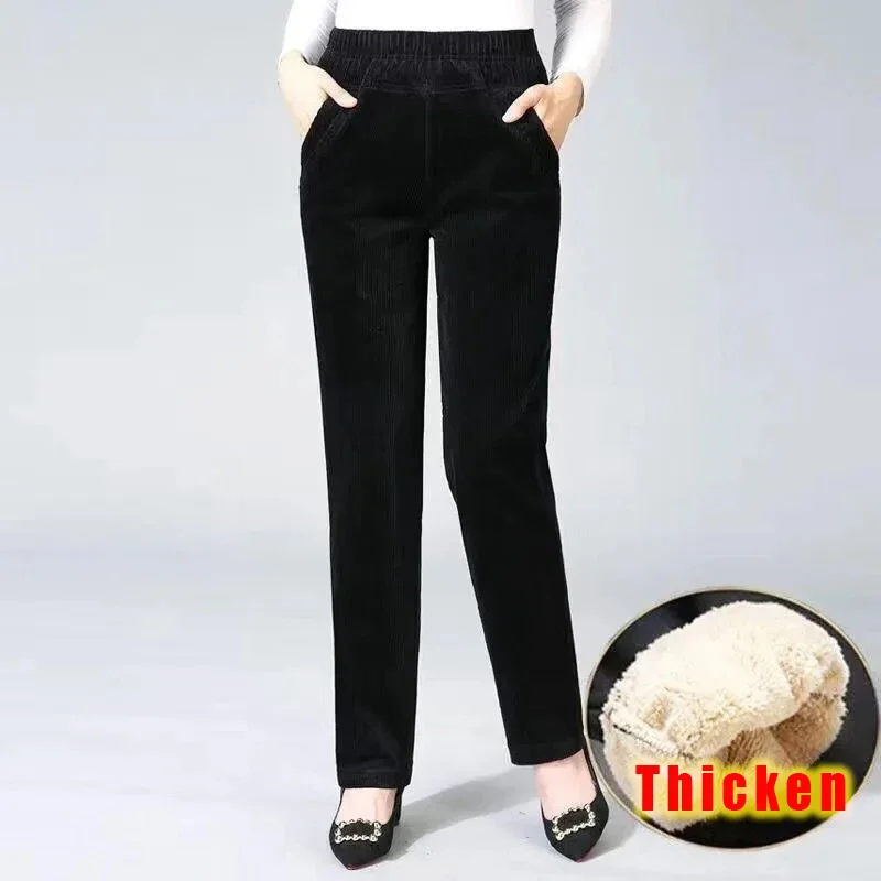 Autumn Winter Plush Thick Thin Elegant Women's Pants High Waist Fleece Pencil Pants Women Corduroy Leggings Office Lady Trousers