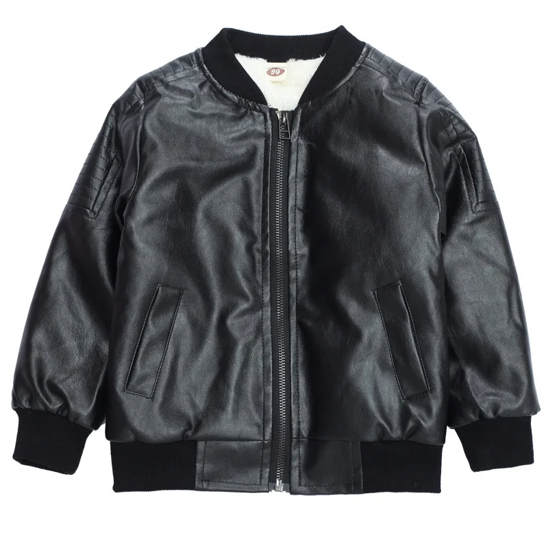 Boys Plus Velvet Thick Leather Jackets Kids Girls Autumn Winter Coat Fashion Clothing Children's Warm PU Leather Outerwear 2-14Y