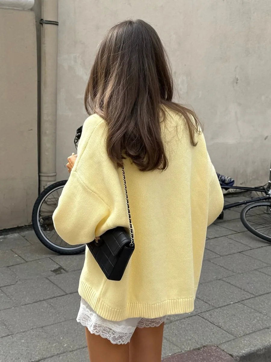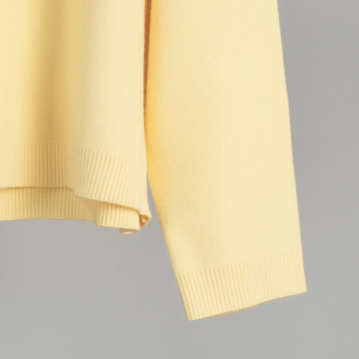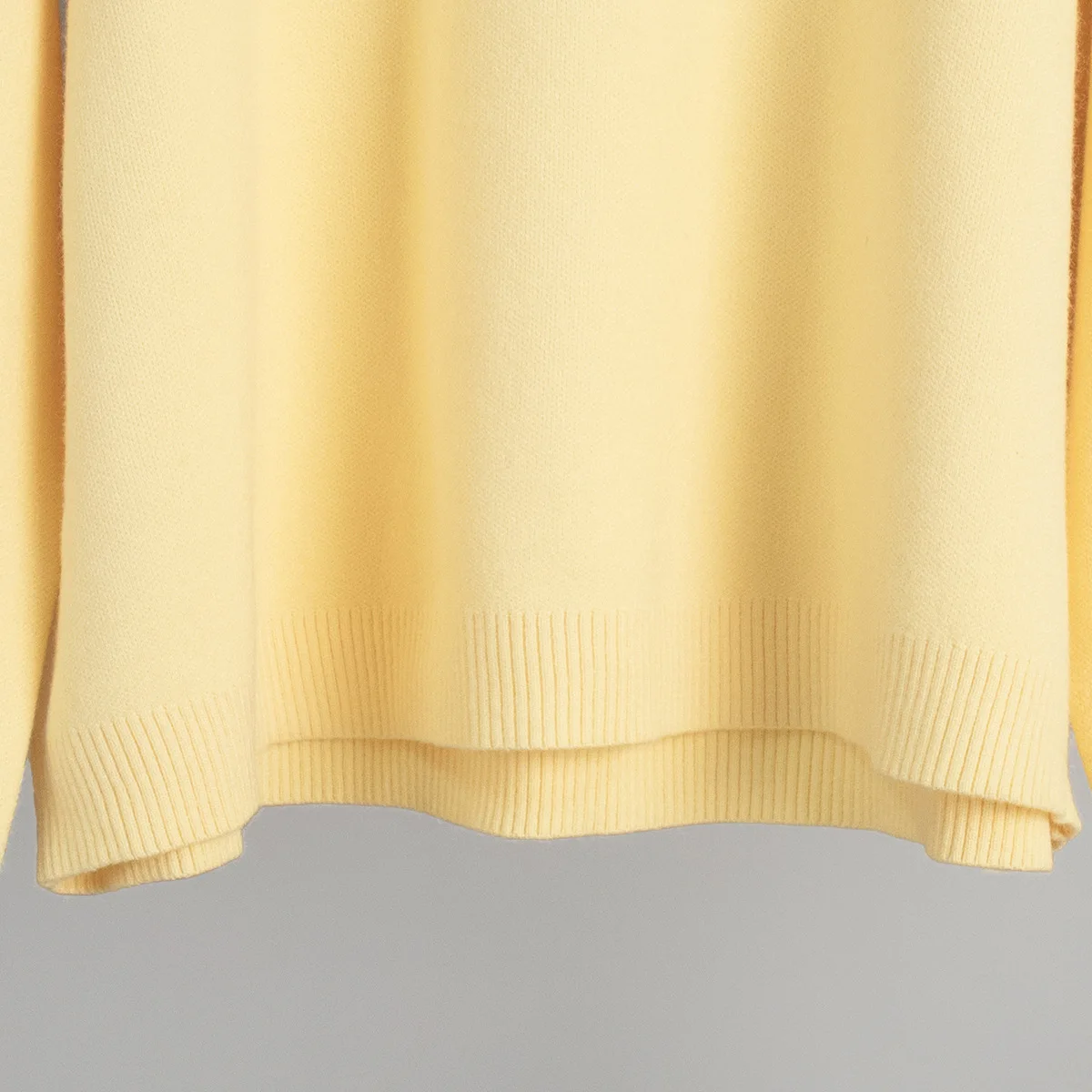 Stay warm and stylish with this butter-yellow knitted sweater designed for everyday casual wear. Perfect for women who value comfort and effortless street-ready appeal during autumn days.