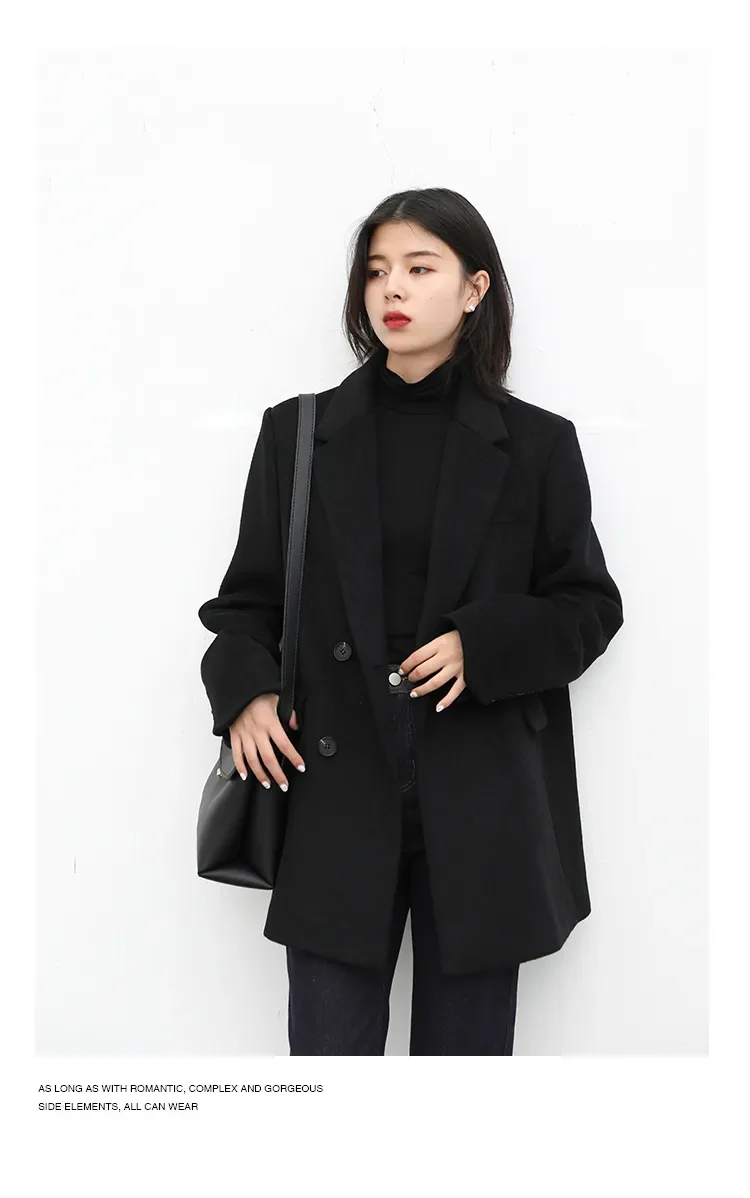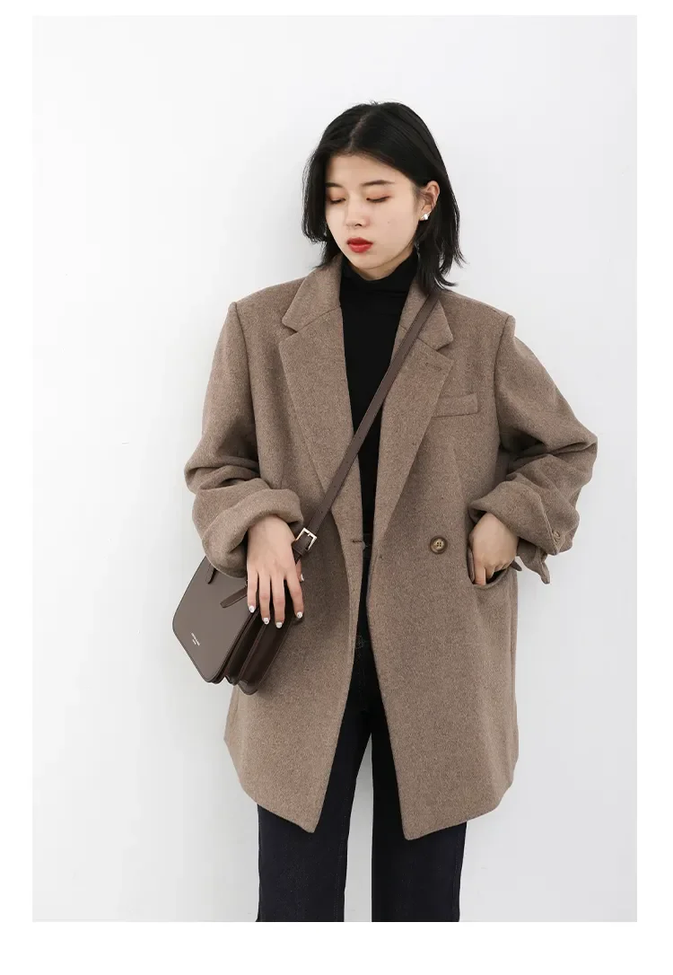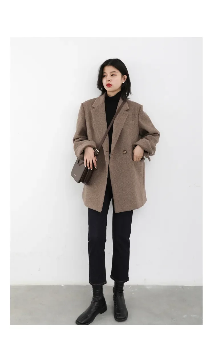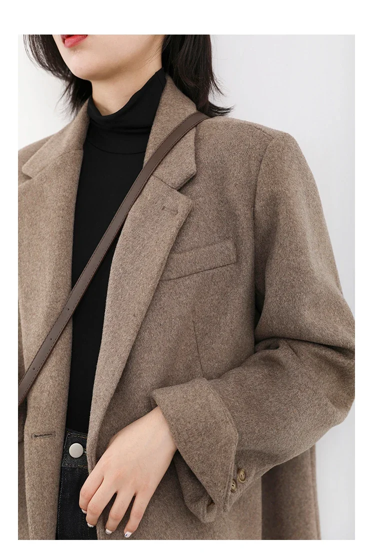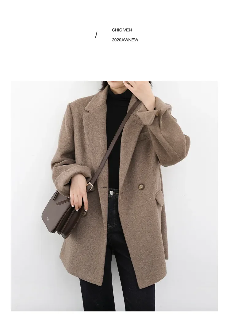 CHIC VEN Autumn Winter Women Coats Wool Blend All-match Mid-length Blazer Women's Woolen Overcoat Female Fashion Clothing 2023