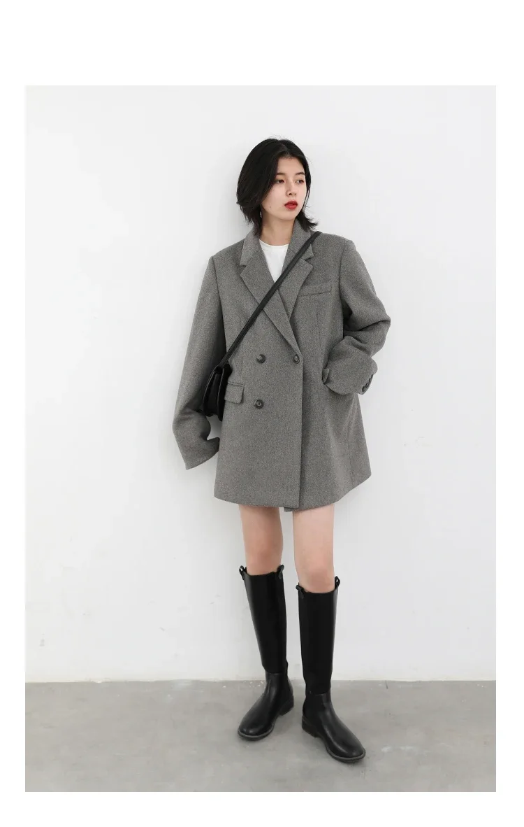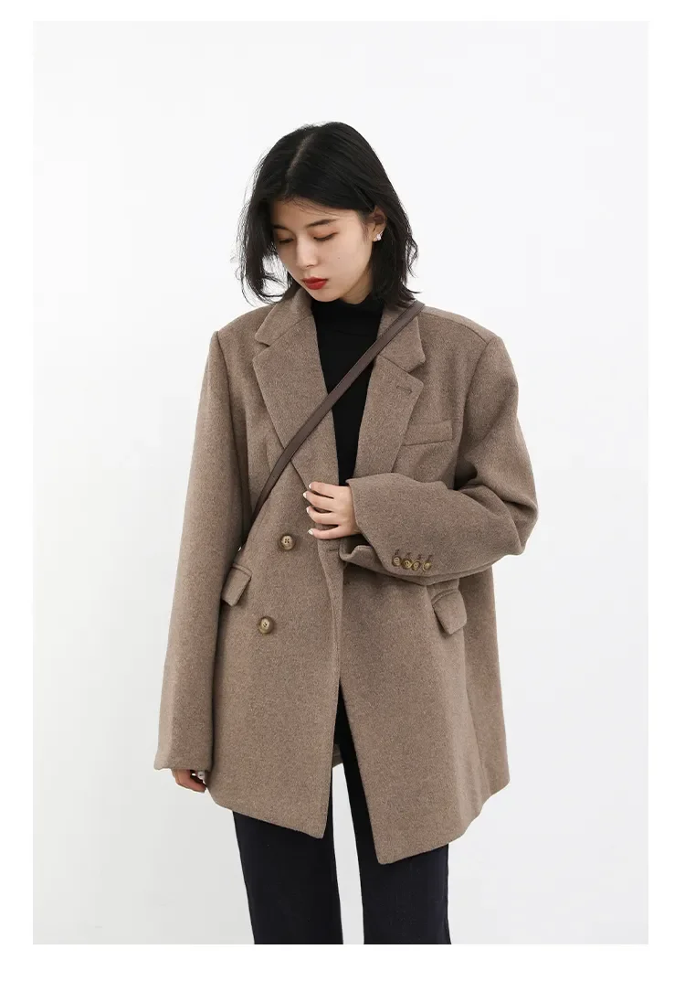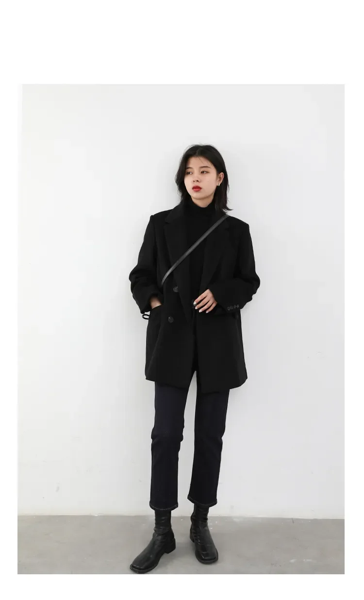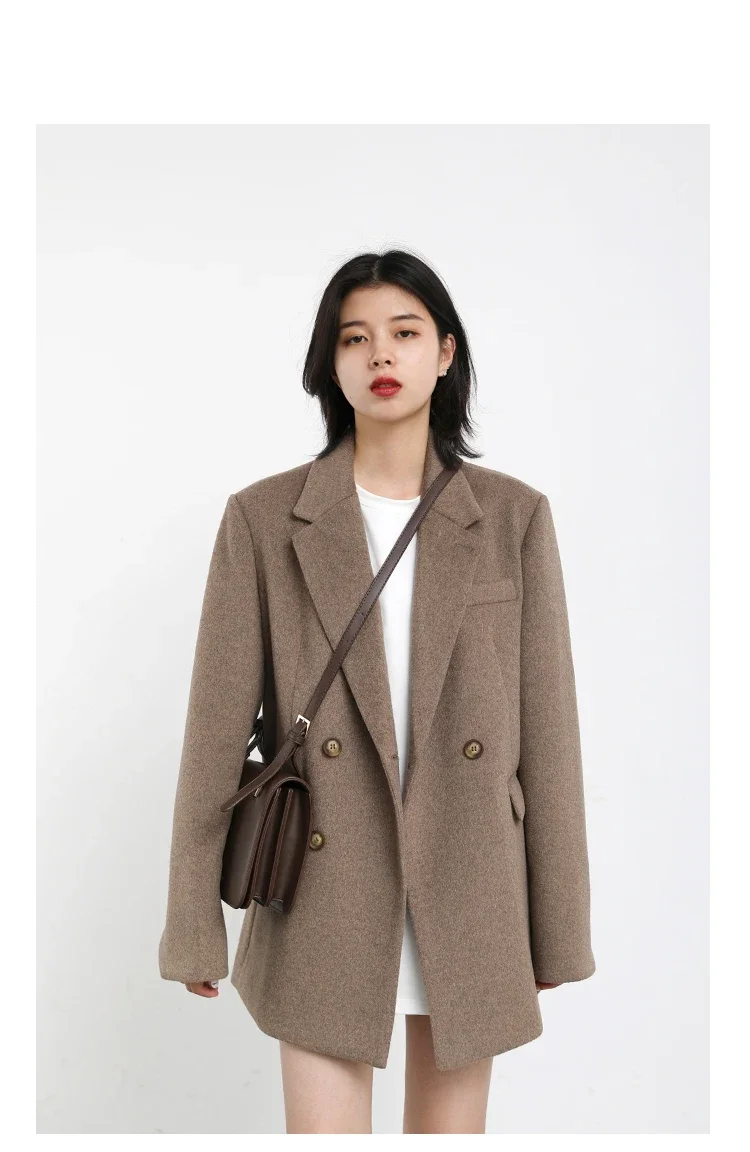 CHIC VEN Autumn Winter Women Coats Wool Blend All-match Mid-length Blazer Women's Woolen Overcoat Female Fashion Clothing 2023
