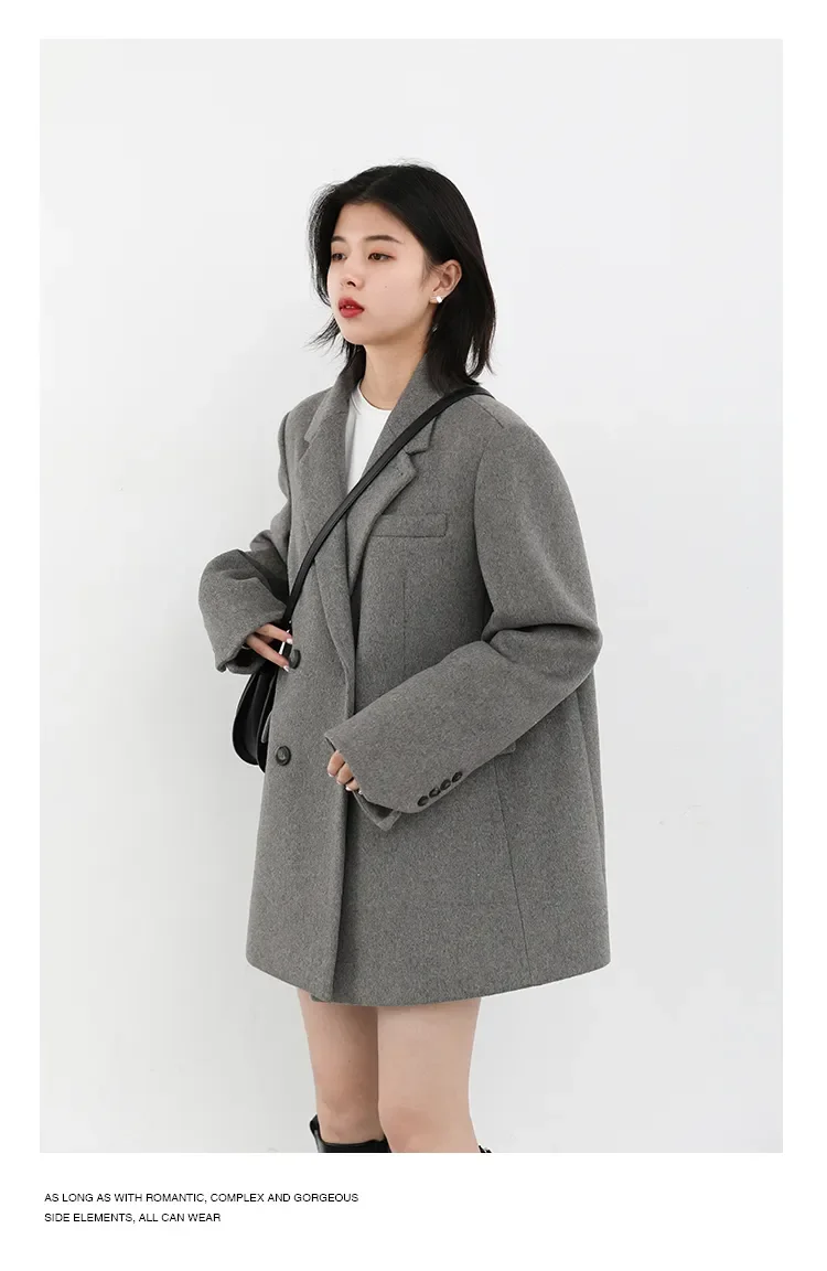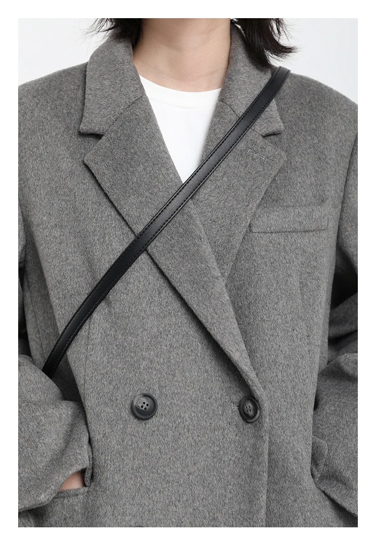 - Style: Wool-blend long, mid-length blazer-inspired outerwear with a refined silhouette