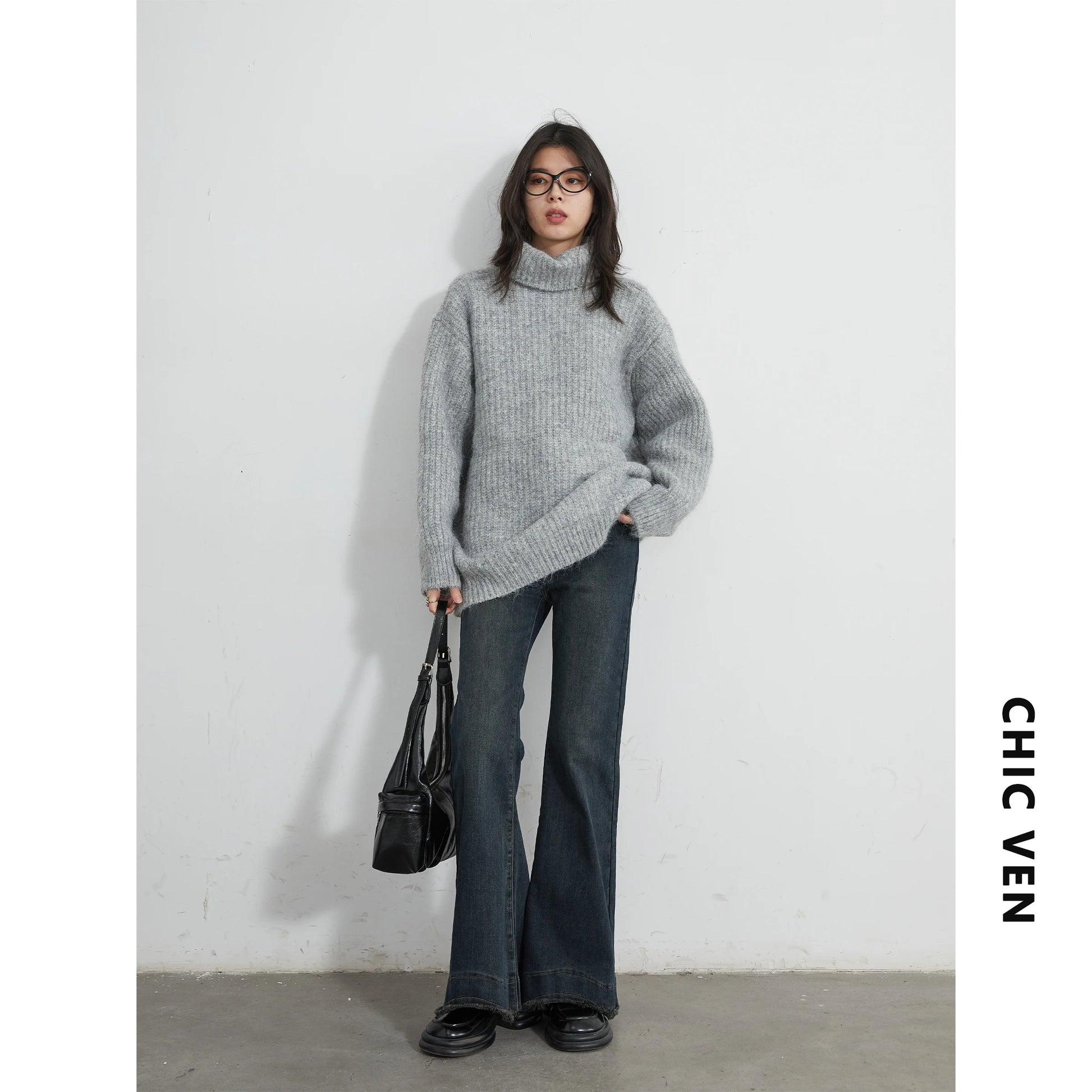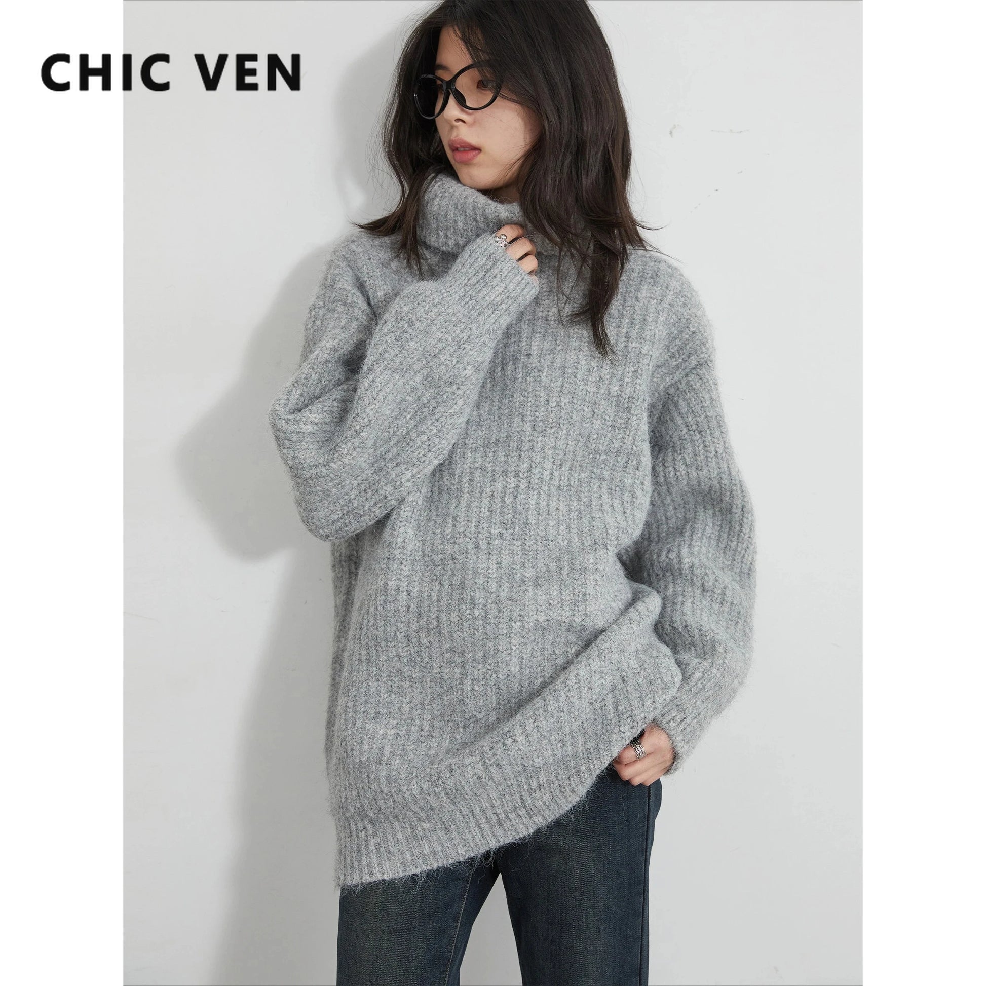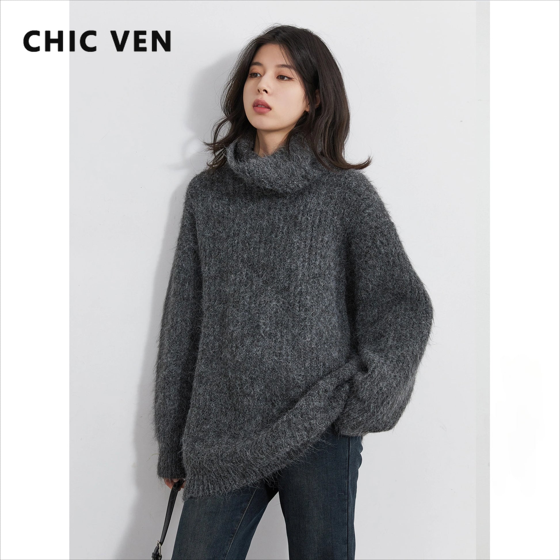 CHIC VEN Women Turtleneck Sweaters Solid Loose Casual Pullovers Bottom Thick Warm Female Jumpers Knitwear Autumn Winter 2025