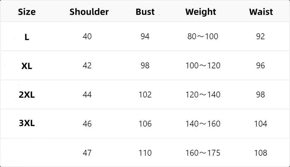 - Size Information: Lengths (L: 40 cm, XL: 42 cm, XXL: 44 cm, XXXL: 46 cm).