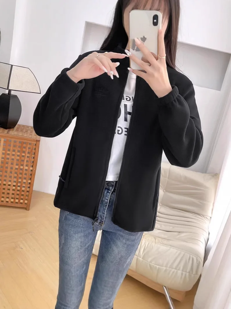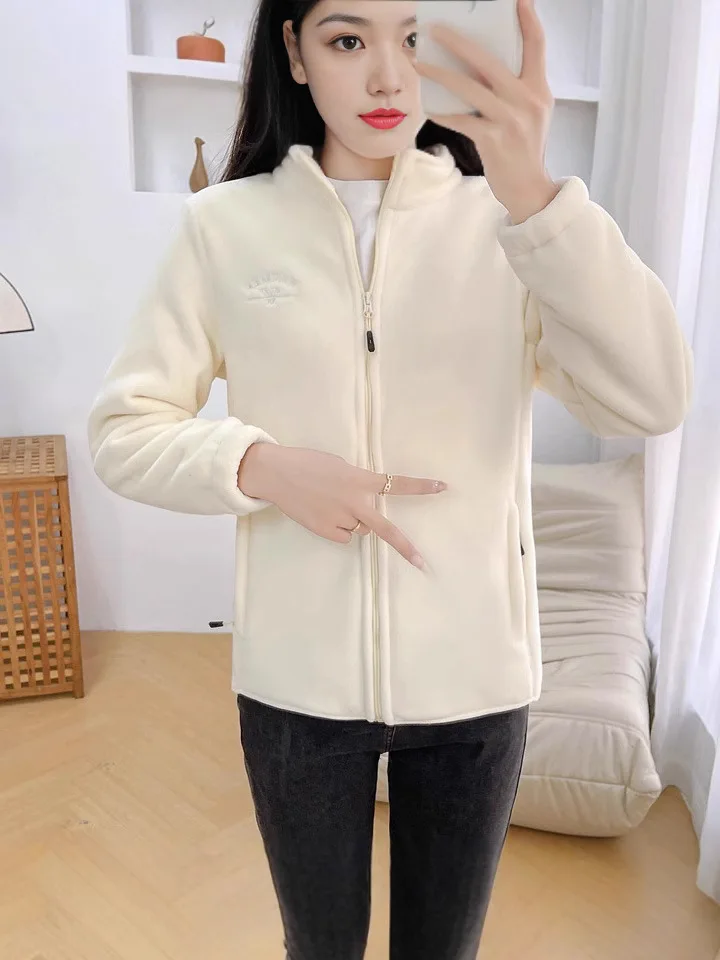 Elegant Loose Long Sleeve Liner Coats Fashion Women Zipper Polar Fleece Zipper Warm Jackets Casual Letter Print Winter Outerwear