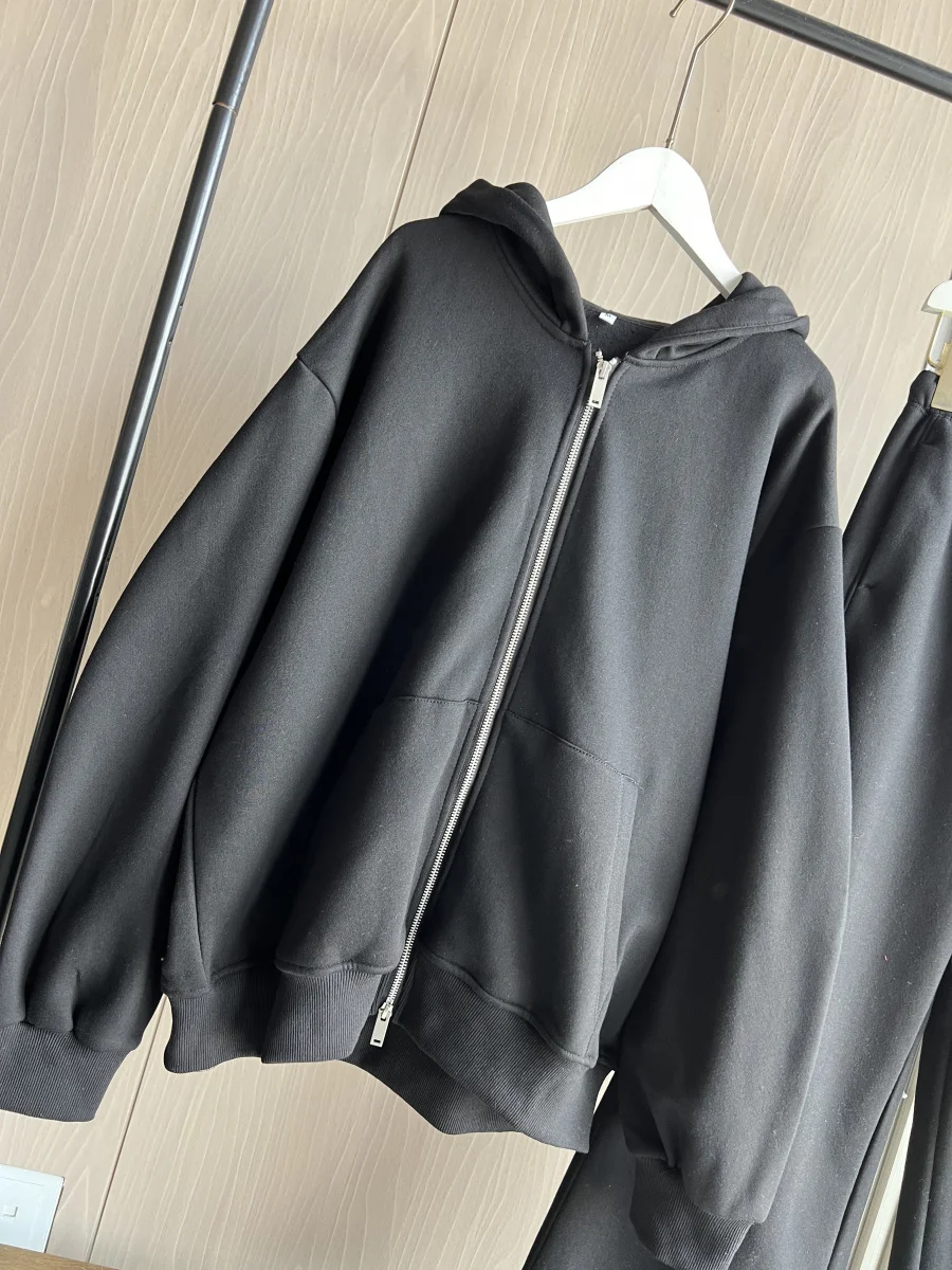 ETJ 2025 Fall/Winter new women's casual sports oversized zipper hoodie wide leg mop sweatpants set 4174842