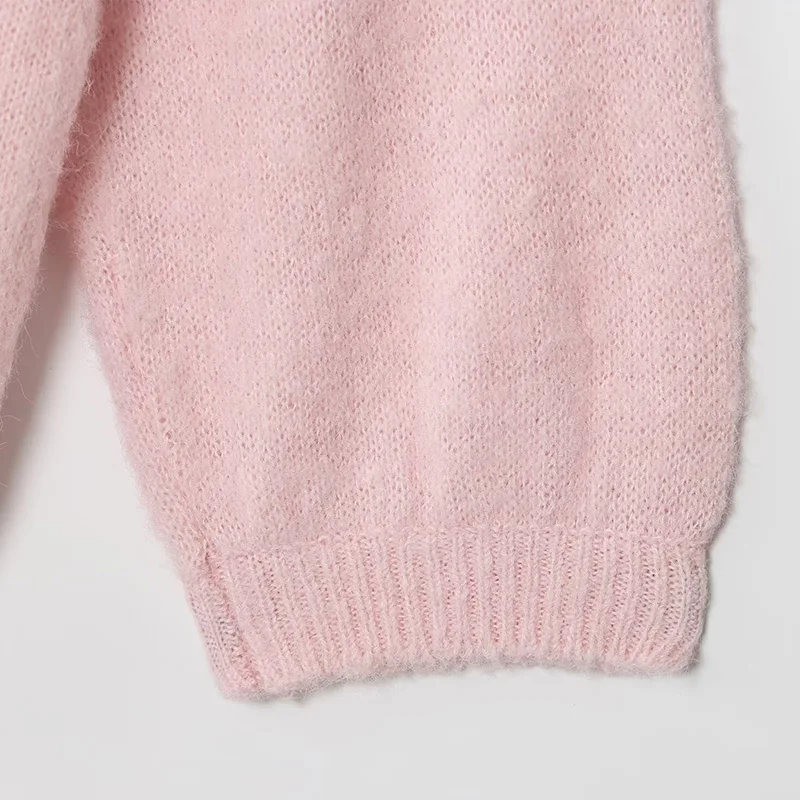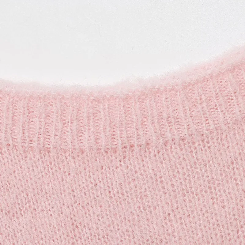 Mohair Skew-collar Pullover Women Knitted Loose Long Sleeve Casual Solid Fluffy Short Sweater Autumn All-match Warm Female Tops