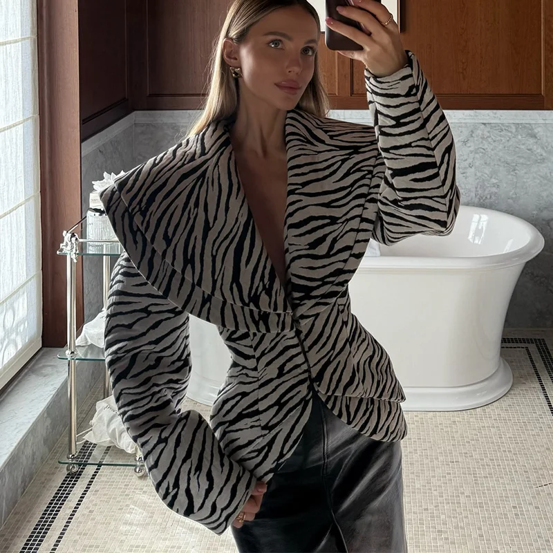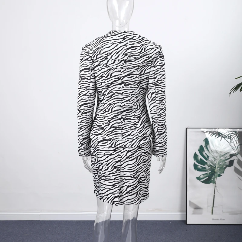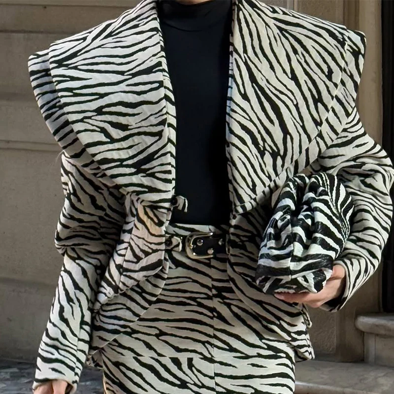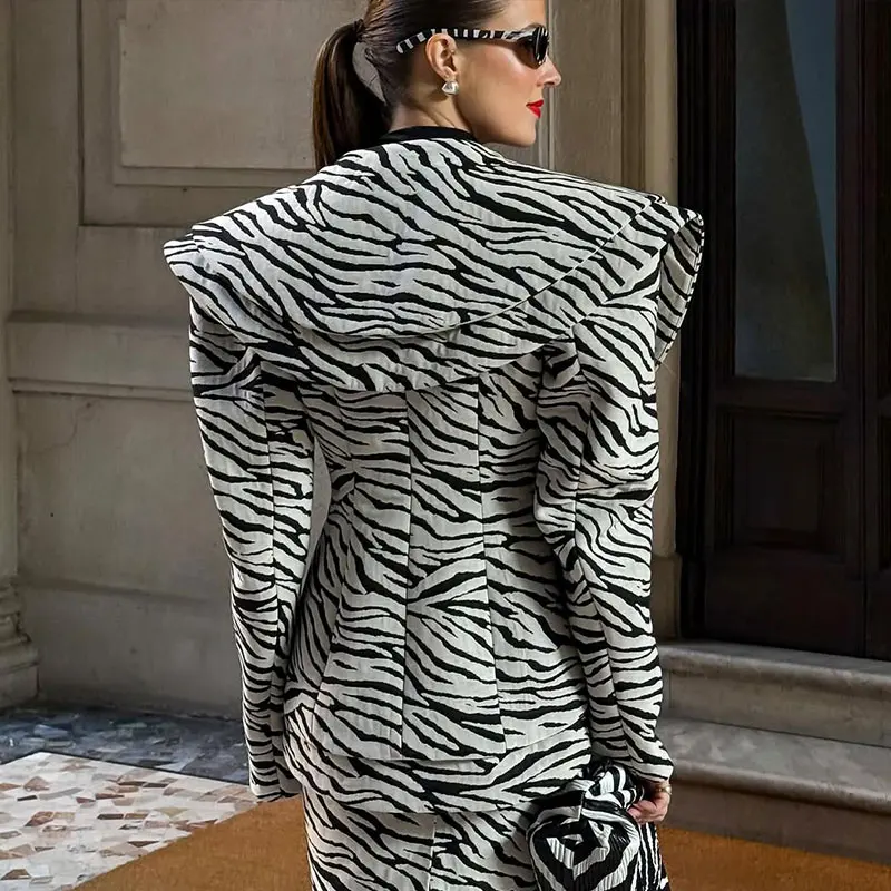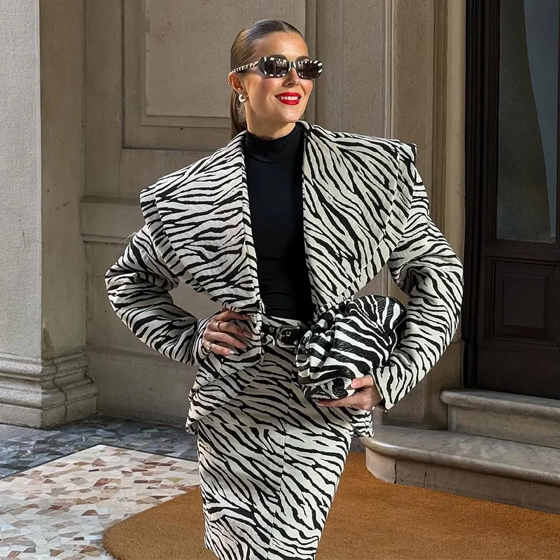 Fashion Zebra Printing Women's Jacket Skirts Suit V-Neck Waist-Closed Lady Sets 2025 Autumn Winter Elegant 2 Pieces Set Womem