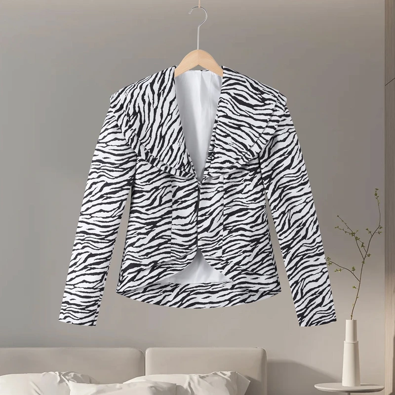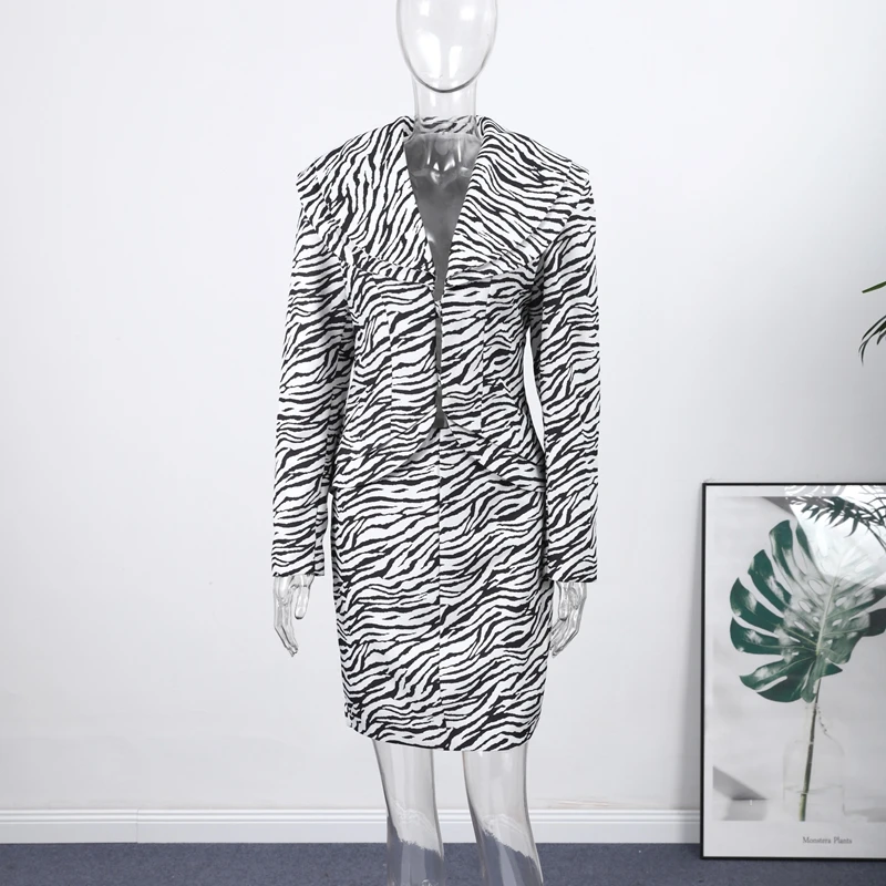 Fashion Zebra-Print 2-Piece Women’s Jacket and Skirt Suit