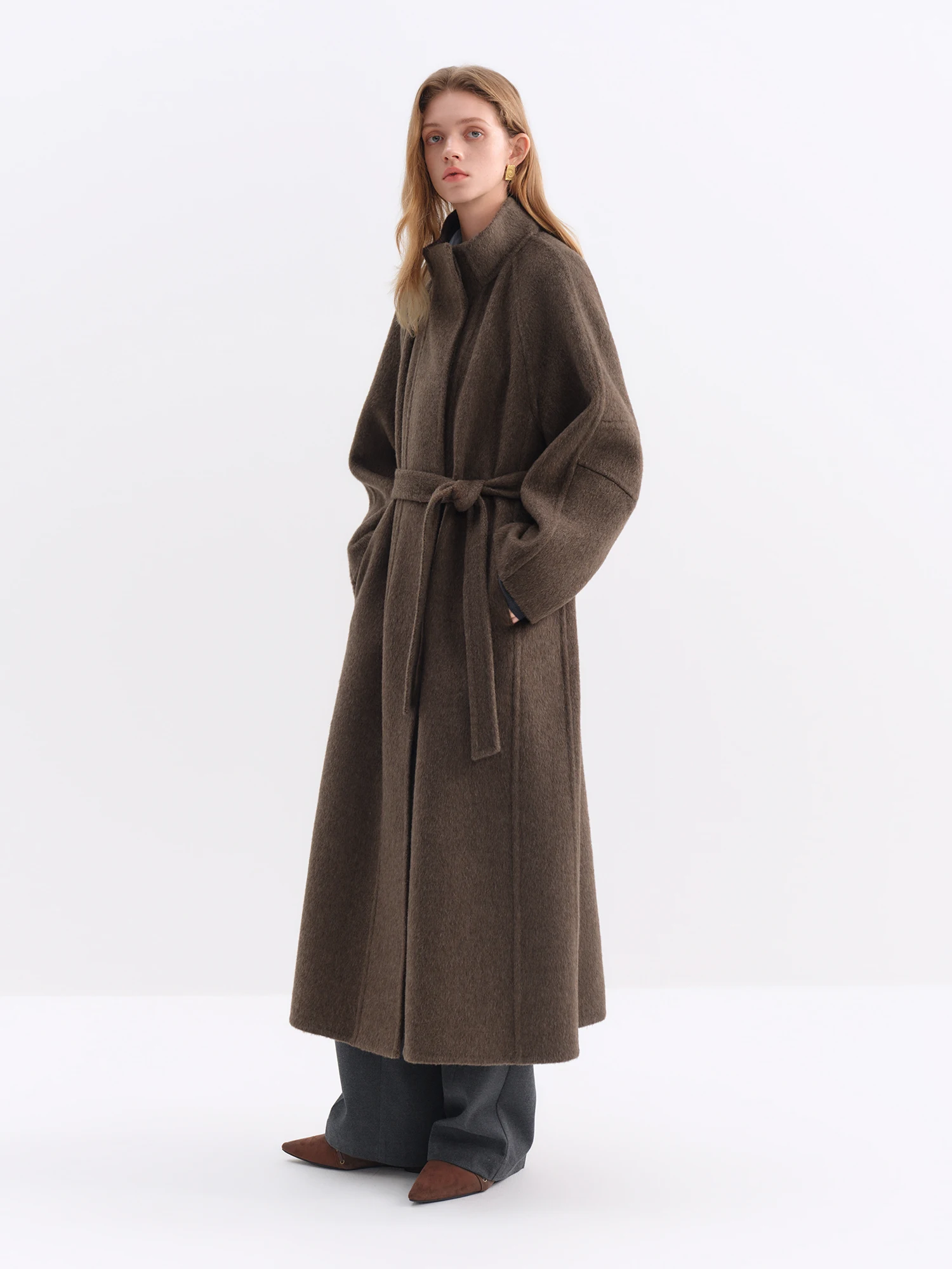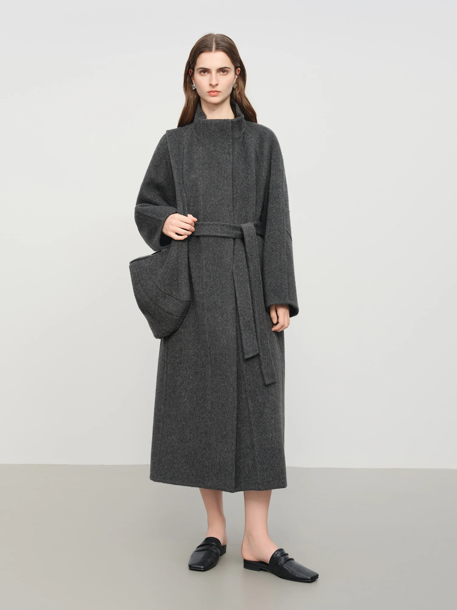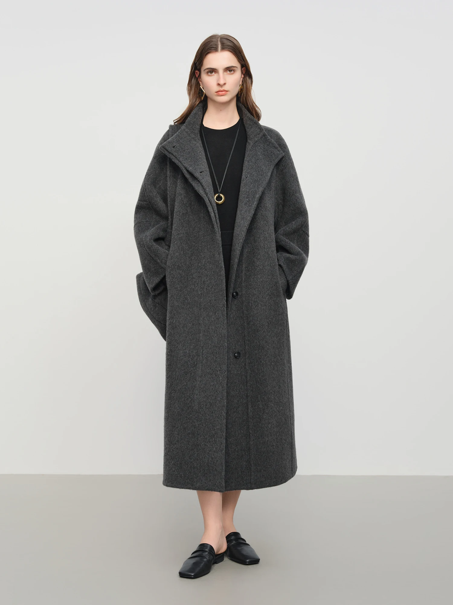 FSLE Minimalist Standing Collar Straight Cut Yak Wool Double-Faced Cashmere Coat Winter 2025 New Arrival Versatile Outerwear