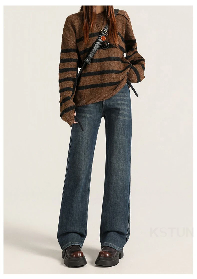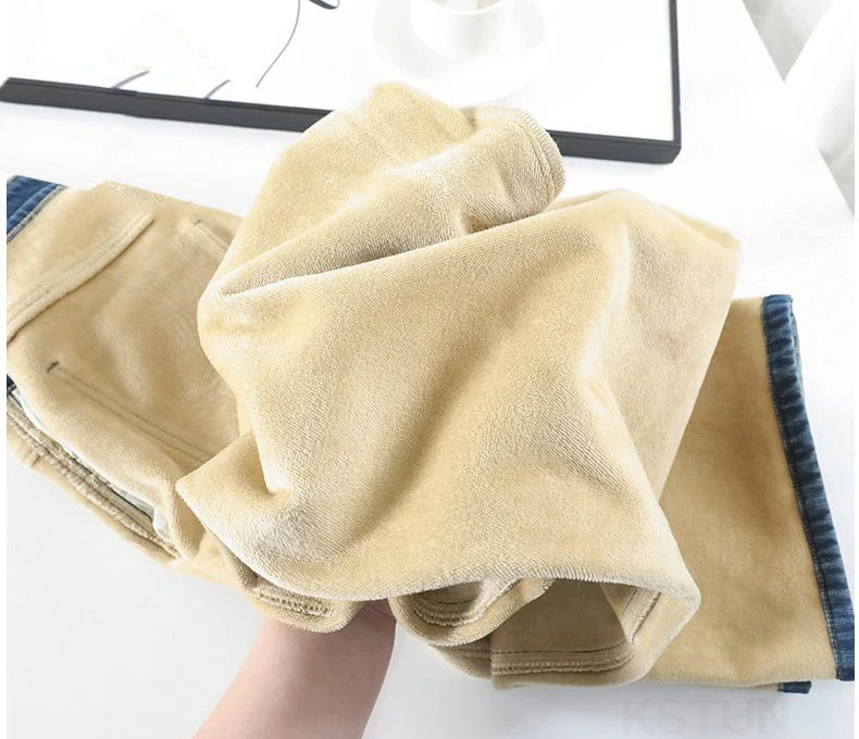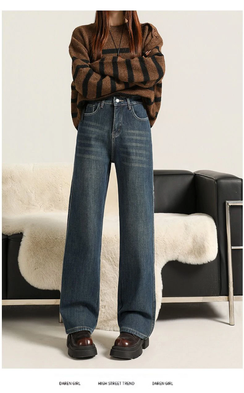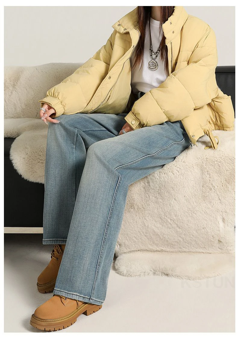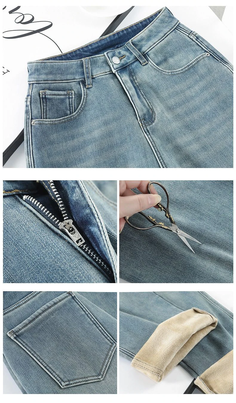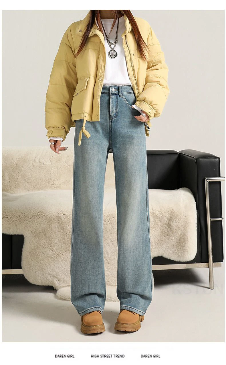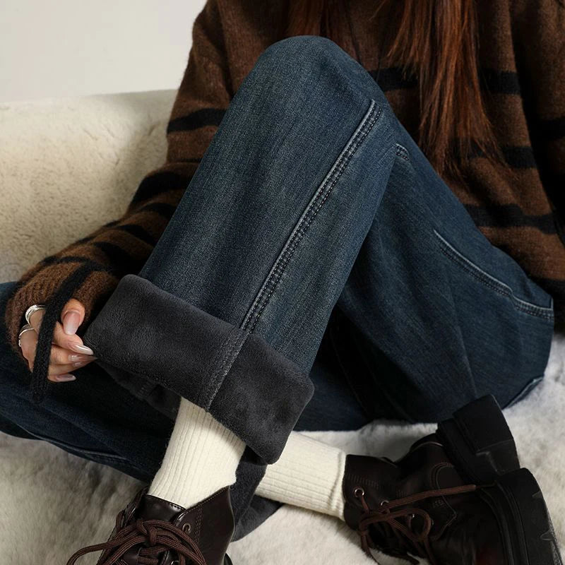 KSTUN Women’s Narrow Cut Wide Leg Jeans with Fleece High Waisted 2025 Winter Warm Jeans For Mom Straight Leg Thicken Trousers