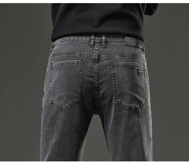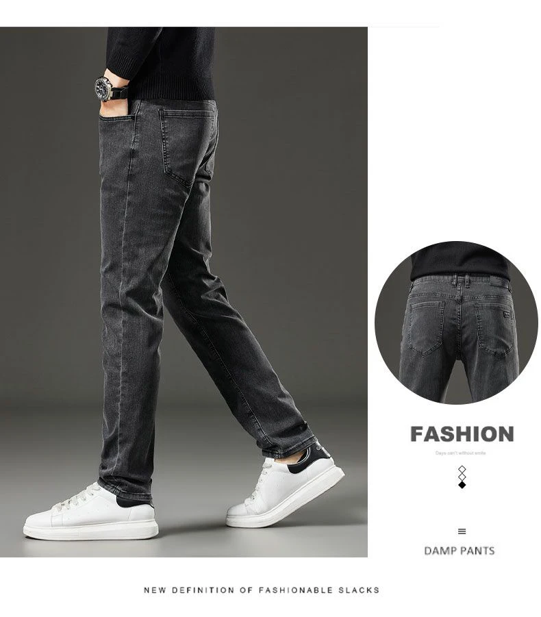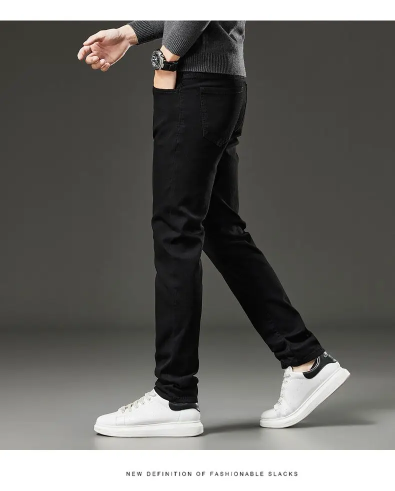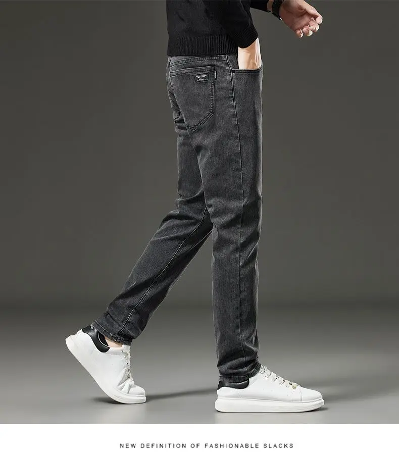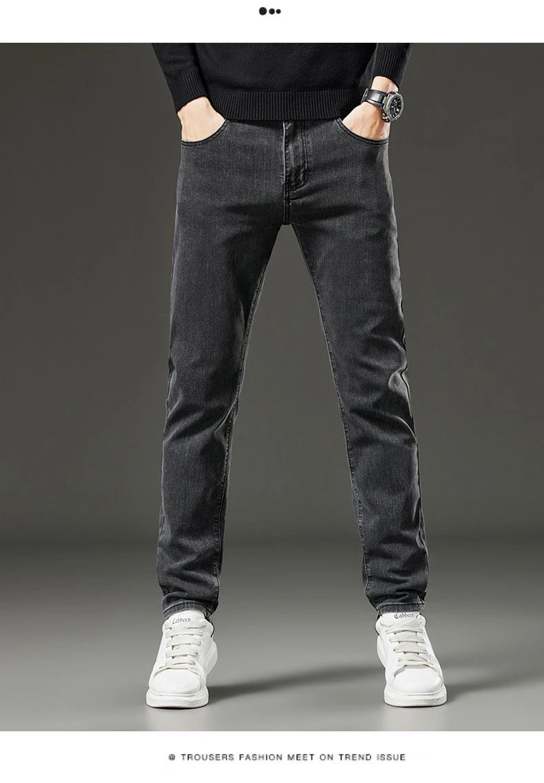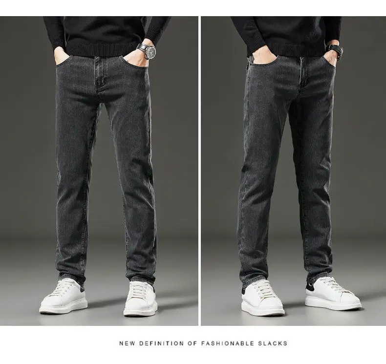 Men's autumn and winter hot jeans elastic small straight leg pants black gray micro elastic zipper fashionable versatile jeans