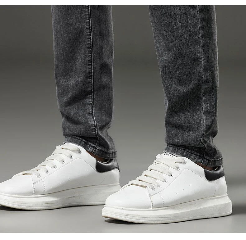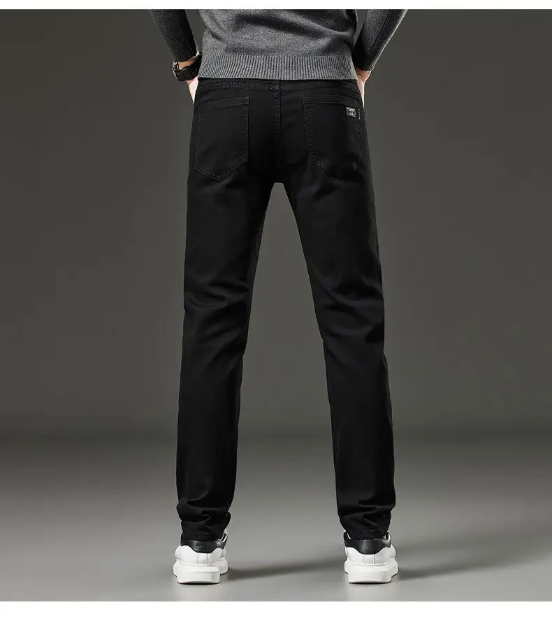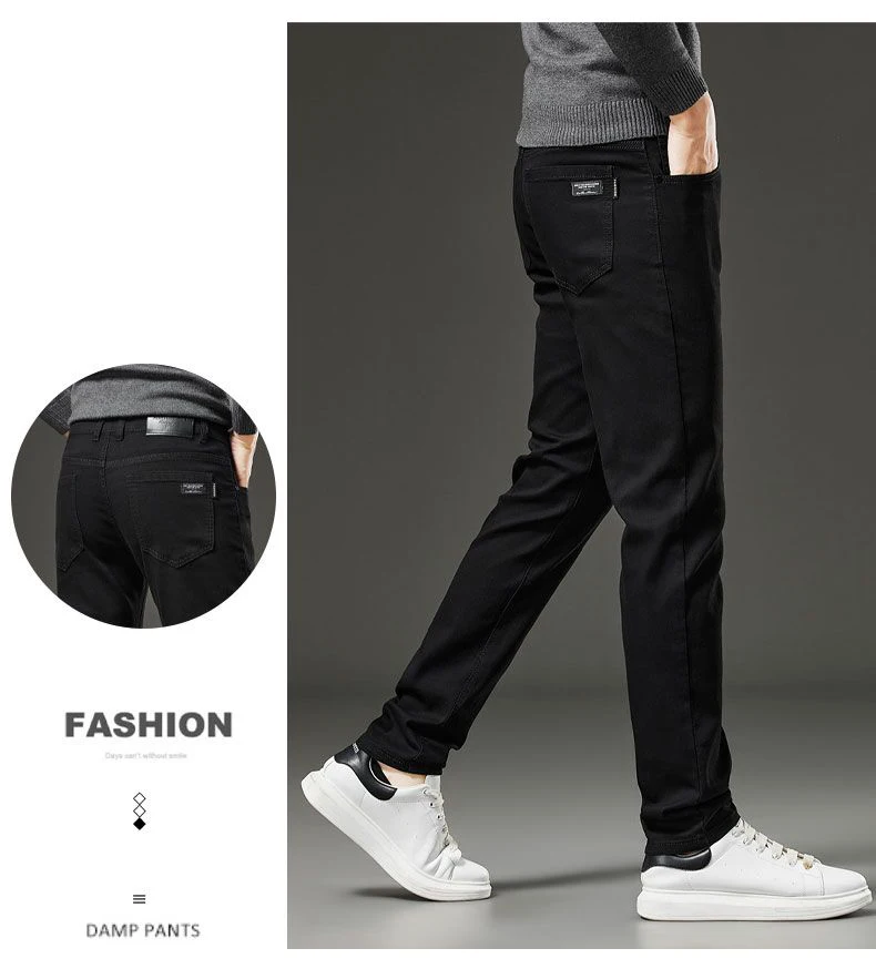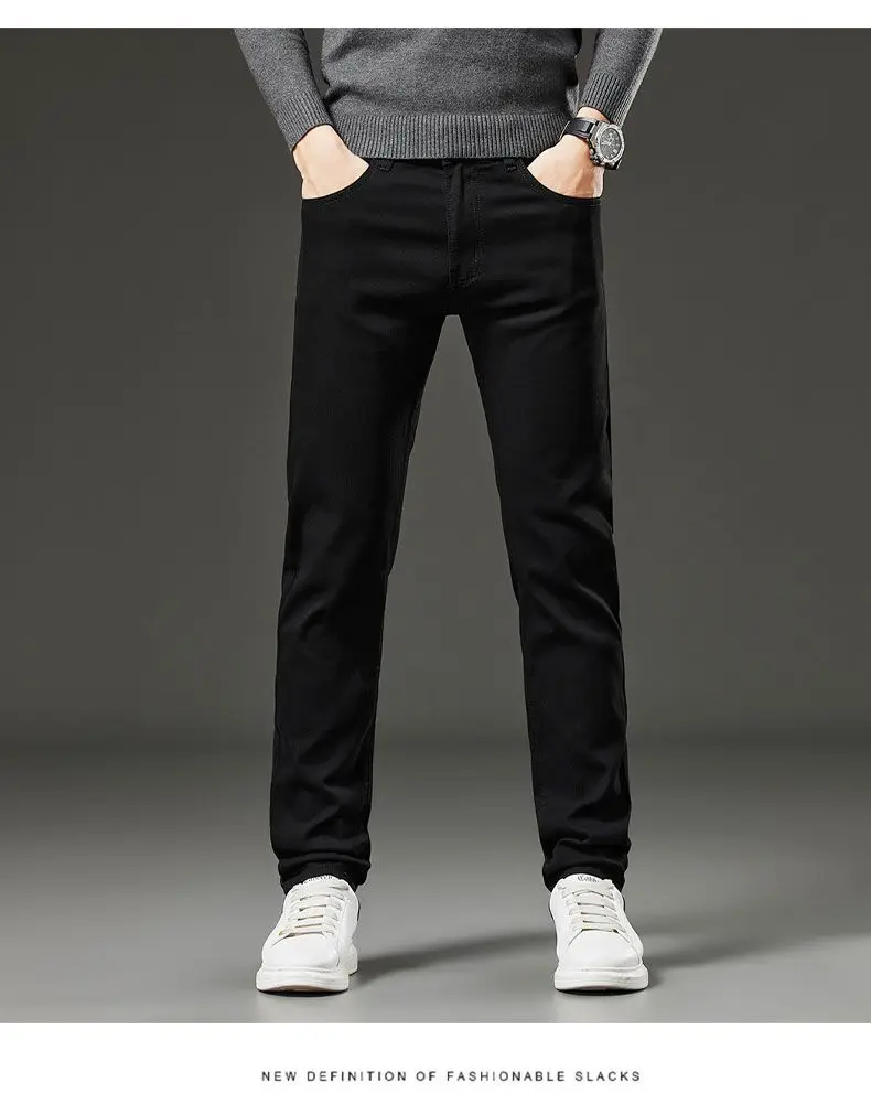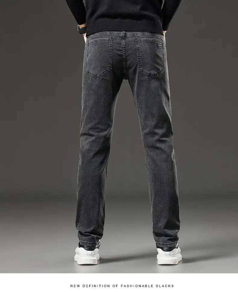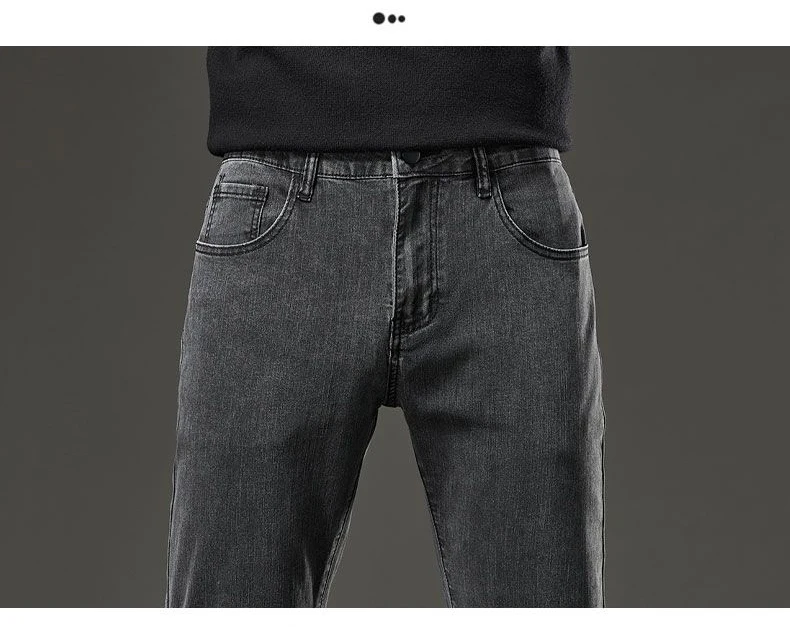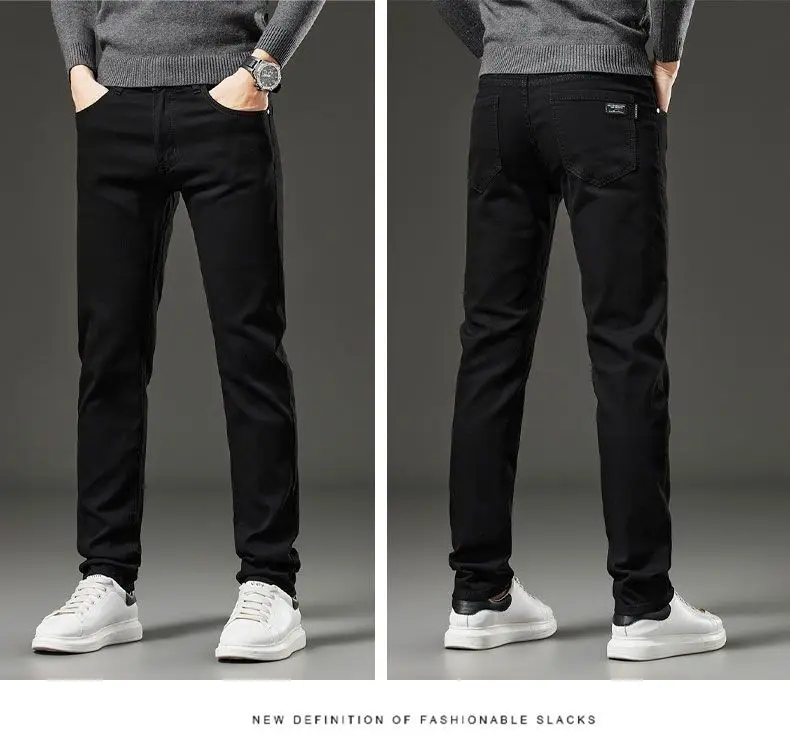 Men's autumn and winter hot jeans elastic small straight leg pants black gray micro elastic zipper fashionable versatile jeans