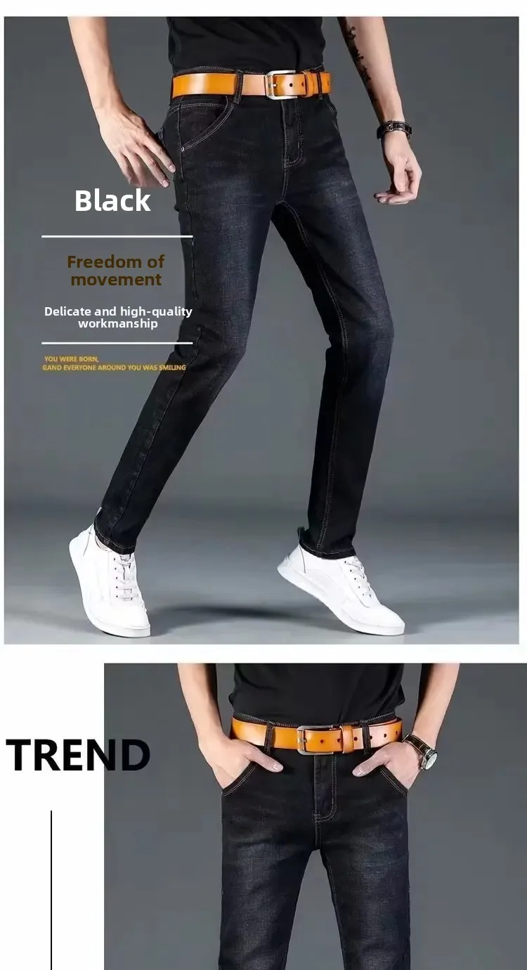 Men's Fleece Lined Loose Straight Leg Jeans Winter Business Casual Trousers for Construction Work Cross-Border Style