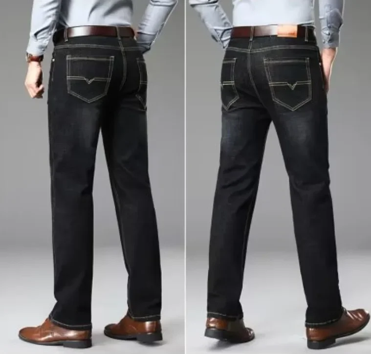 Men's Fleece-Lined Loose Straight Leg Jeans — Winter Business Casual Trousers