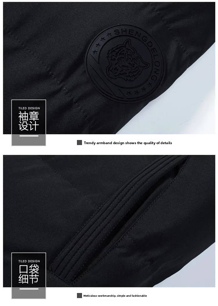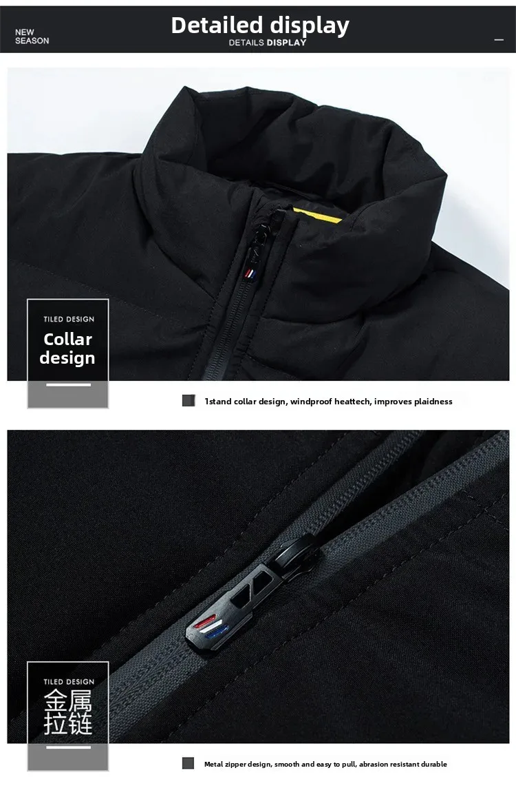 Men's Winter Thickened Cotton Jacket Stand Collar Fleece Lined Coat Casual Outerwear Regular Fit from Mainland China