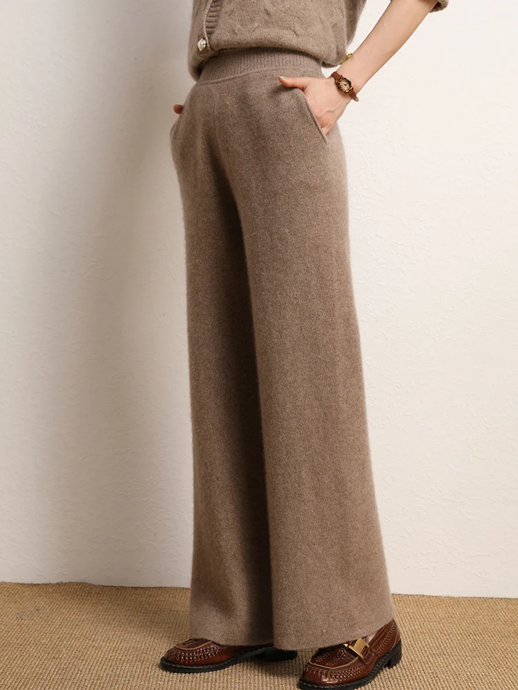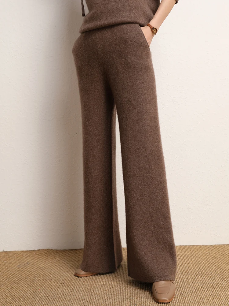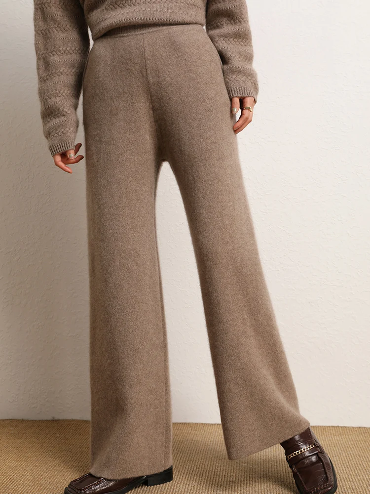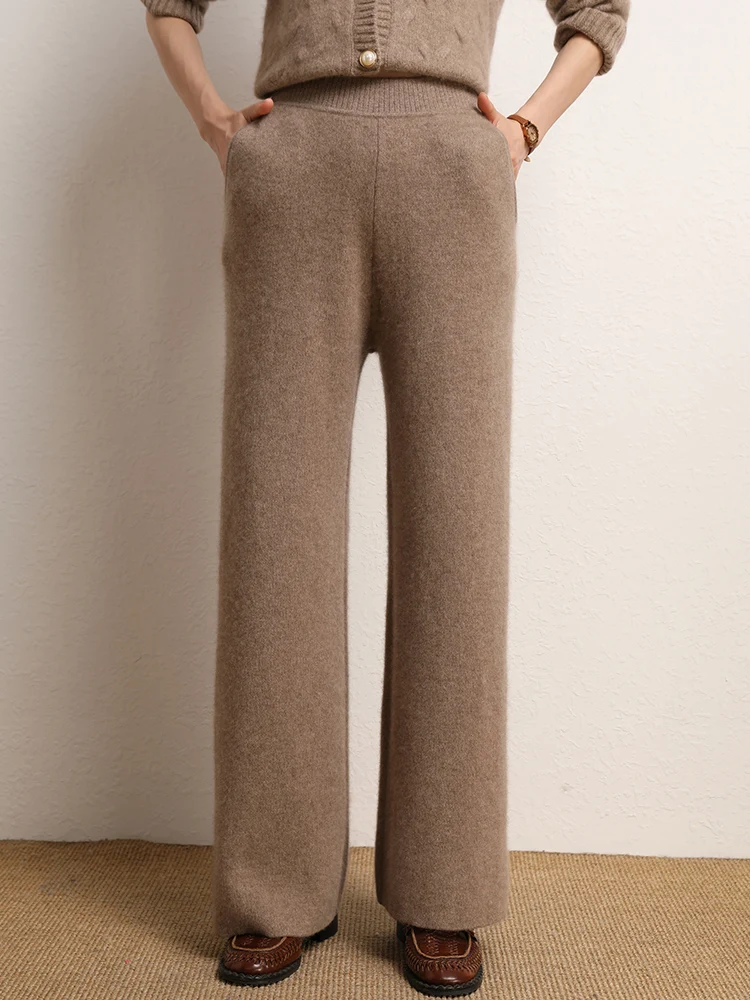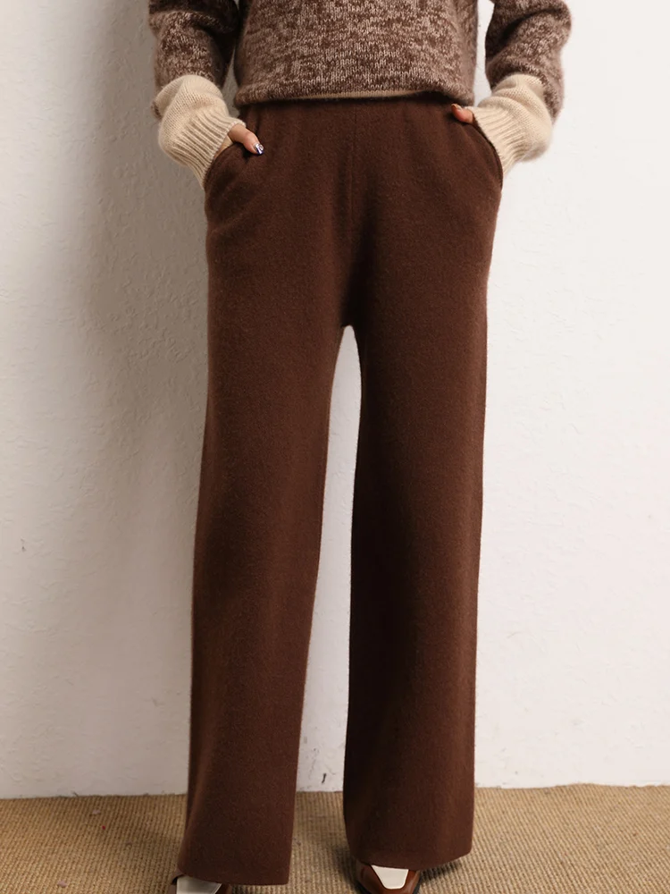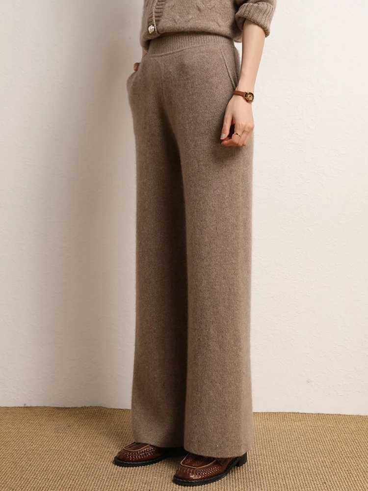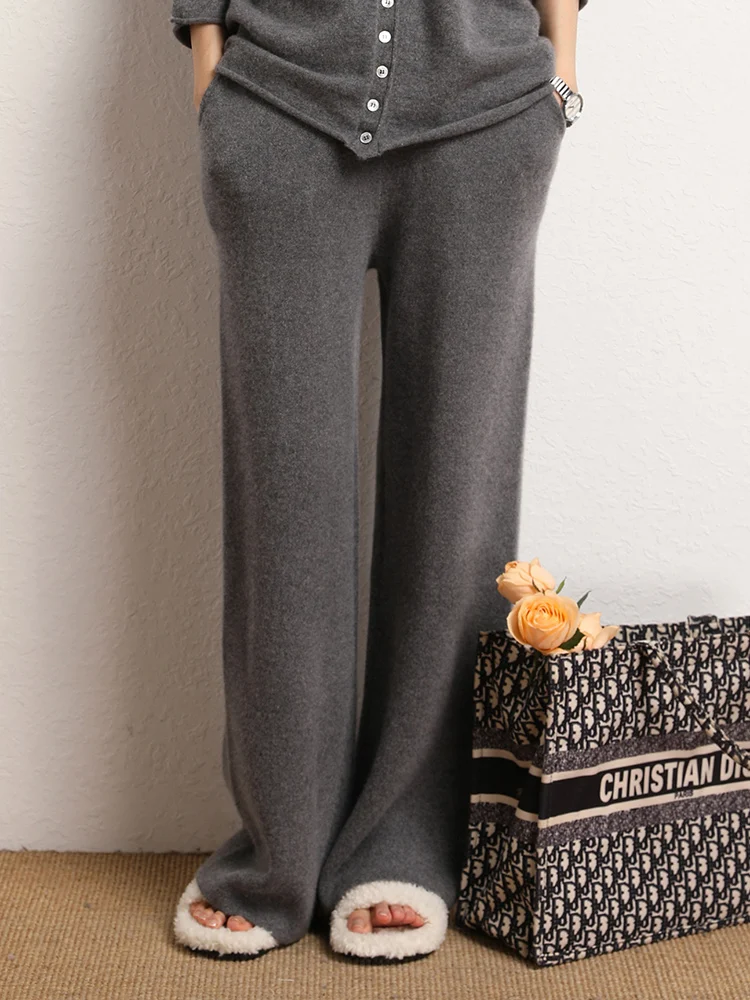 New Chic Women's 100% Cashmere Pants Autumn Winter Wide Leg Pants Simple Style Office Lady Cashmere knitted Trousers Thick Pants