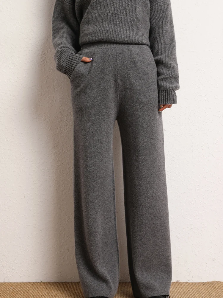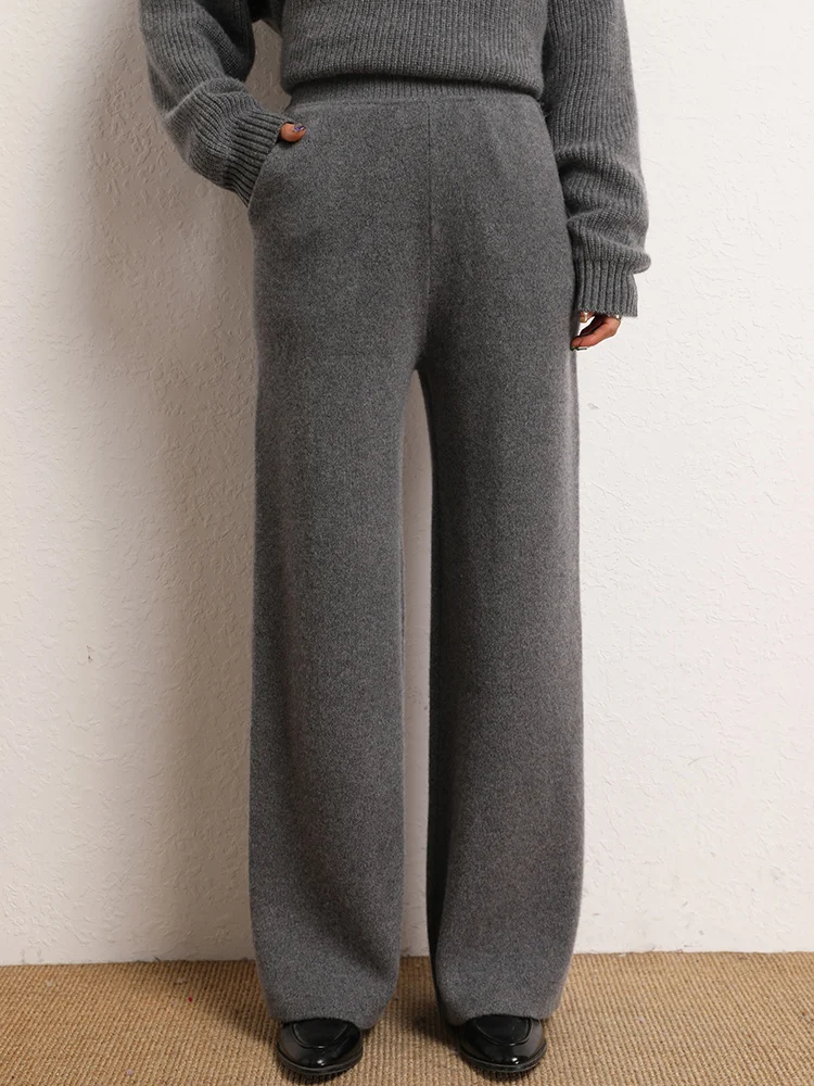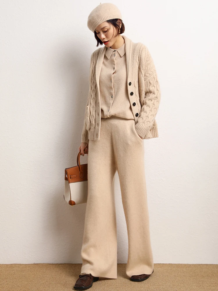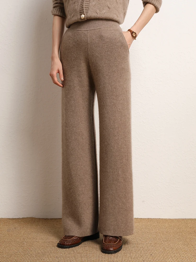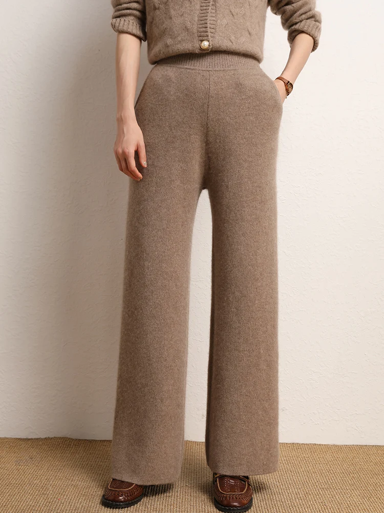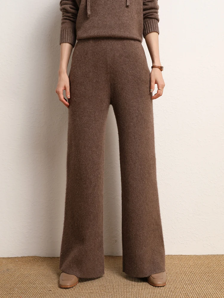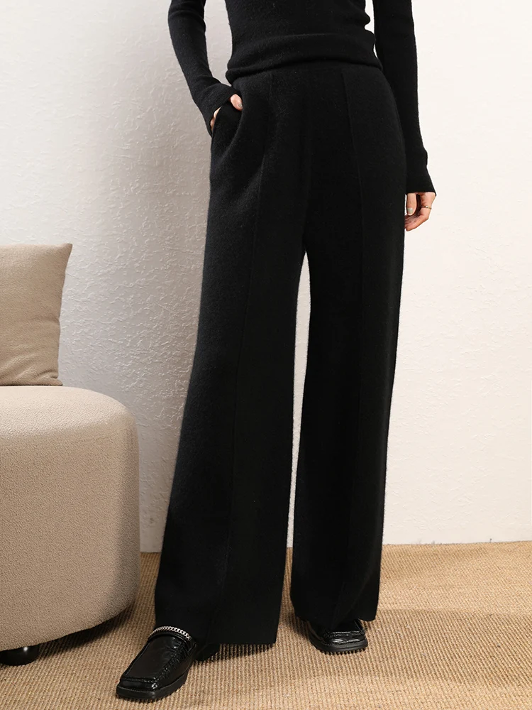 New Chic Women's 100% Cashmere Pants Autumn Winter Wide Leg Pants Simple Style Office Lady Cashmere knitted Trousers Thick Pants