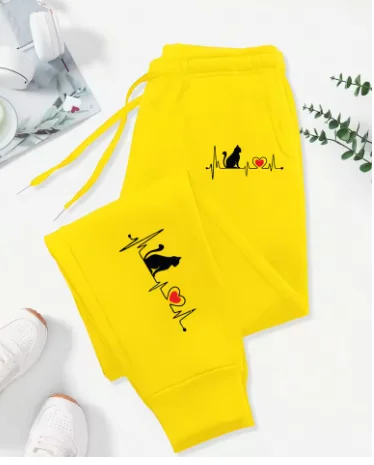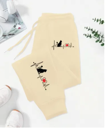 These women's pants blend bold street-ready style with everyday comfort. Designed for casual wear, workouts, and autumn outfits, they feature a playful red heart electrographic print that adds a unique edge to any look.