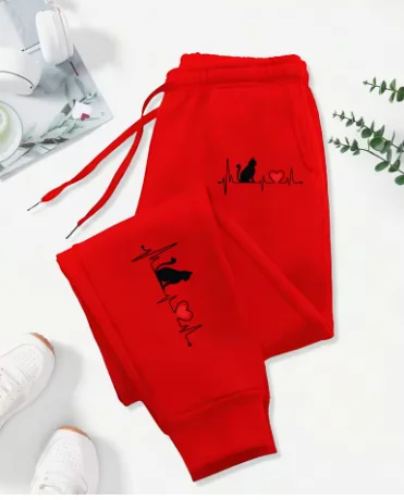 New Dog Red Heart Electrographic Printing Printed Women's Pants Street Sports Pants Casual Autumn Pants