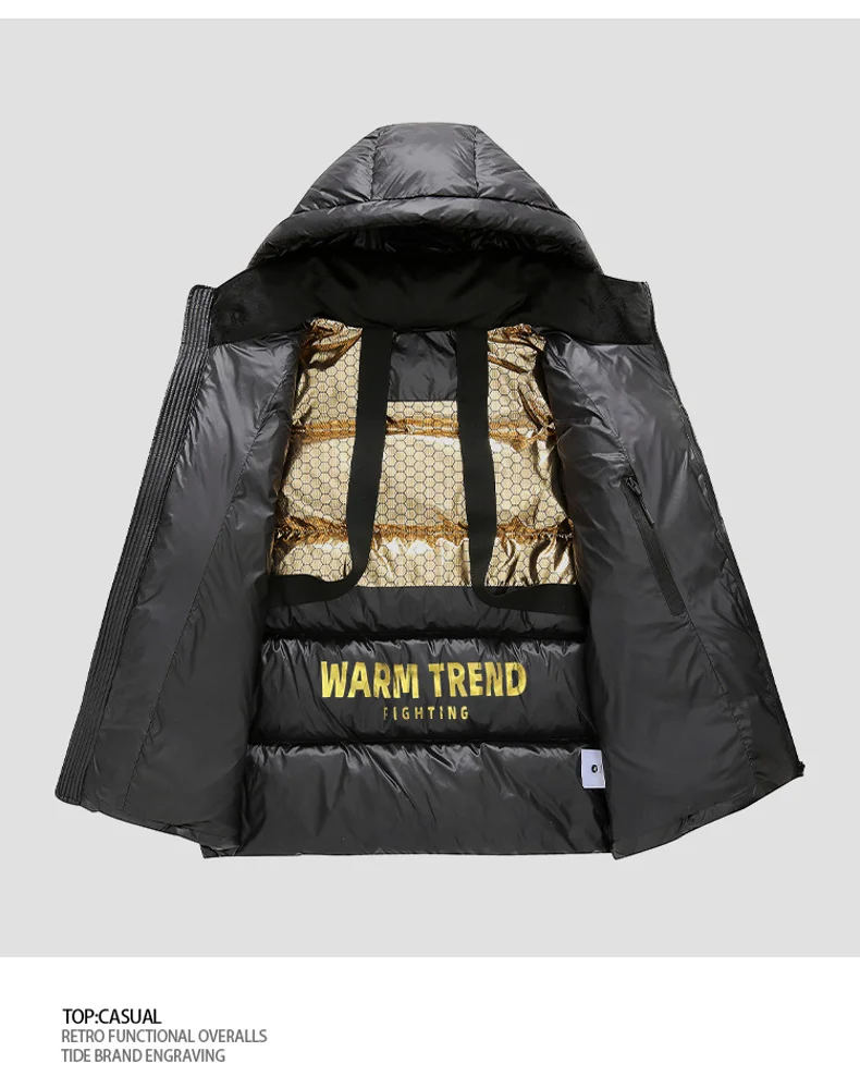 Stay warm and comfortable this winter with the New Down Jacket for men. Designed for outdoor activity and everyday wear, this thick, hooded coat delivers reliable insulation and casual style.