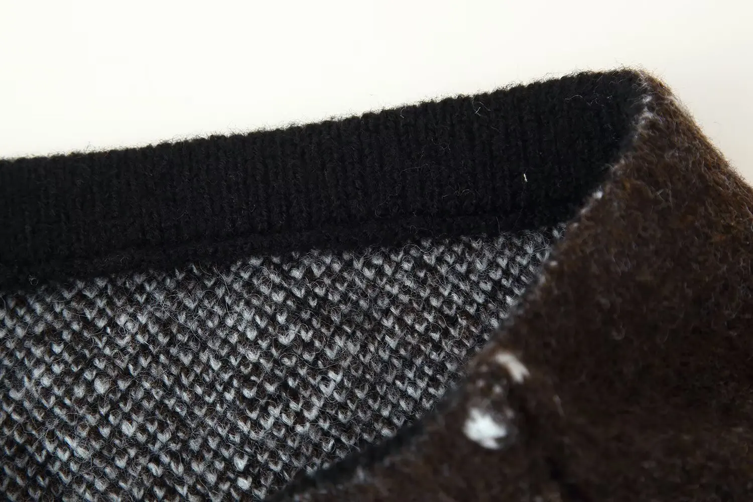 - Three-piece knit set: crop top, cardigan jacket, and matching mini skirt