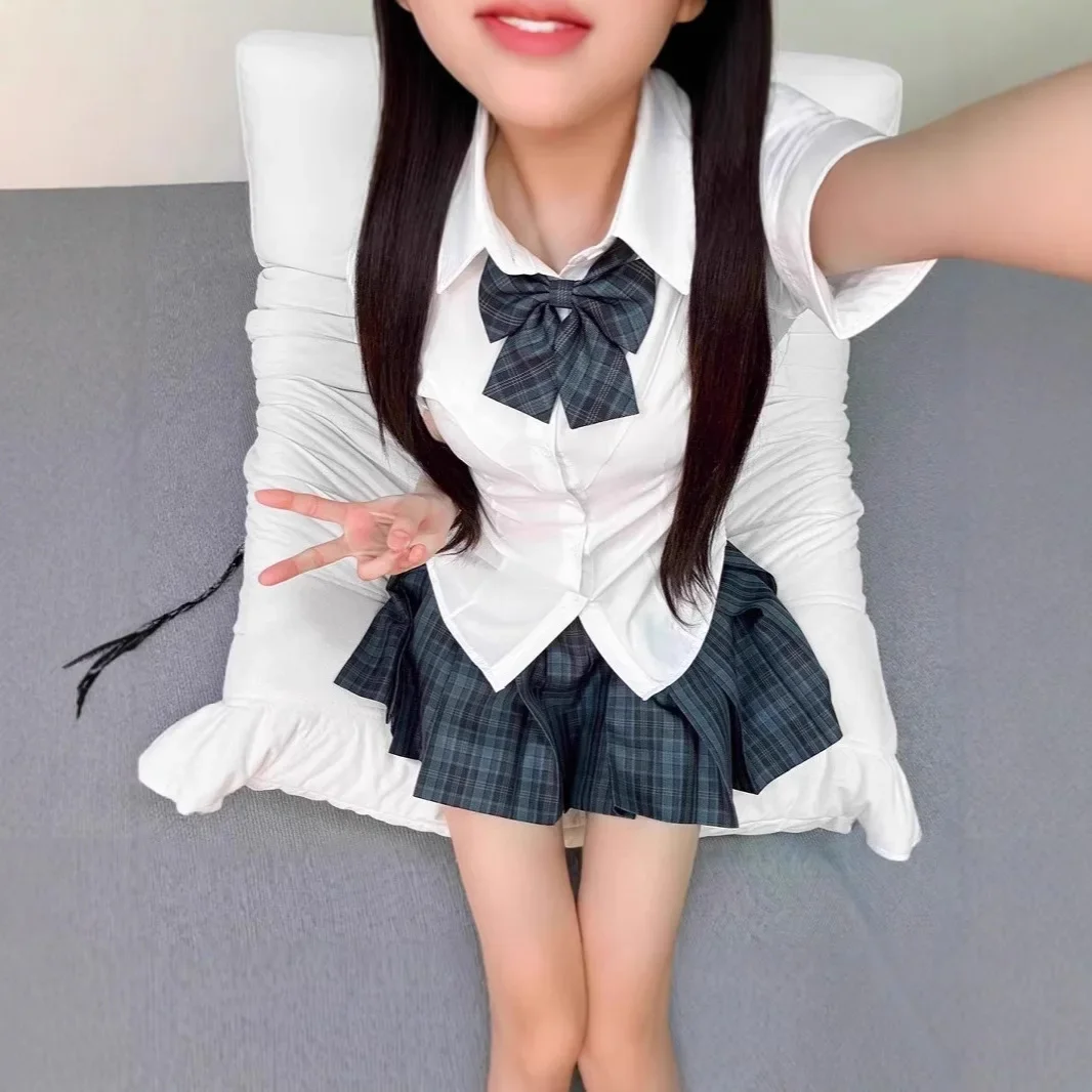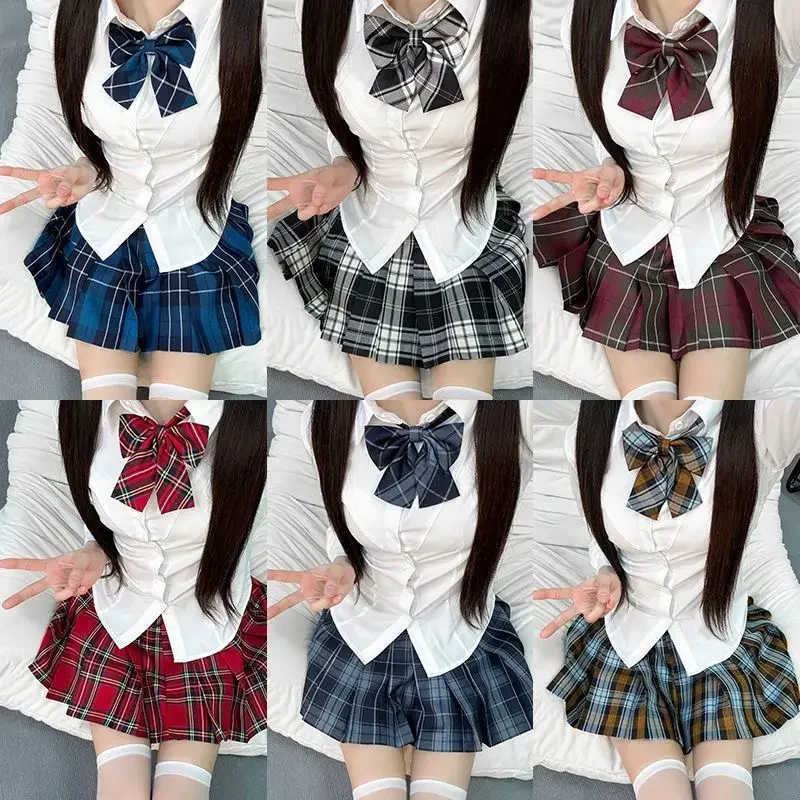 • Short Sleeve Top with Bow Tie : The short sleeve waist shirt features a charming bow tie, adding a playful element to the classic JK uniform style.