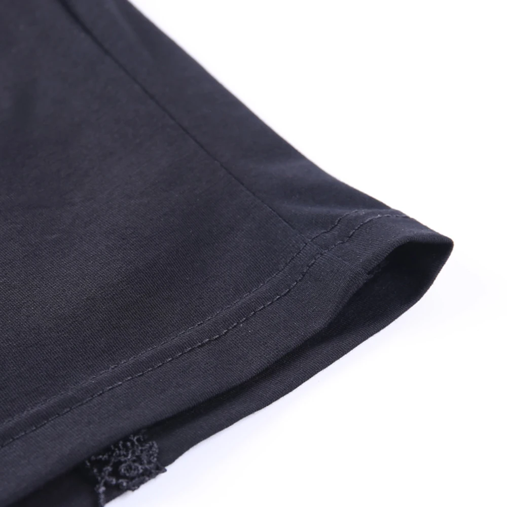 elevate your casual wardrobe with a bold, lace-patchwork tee designed for fashion-forward women. This street-ready top combines a sleek silhouette with gothic punk flair, perfect for summer wear and everyday city style.