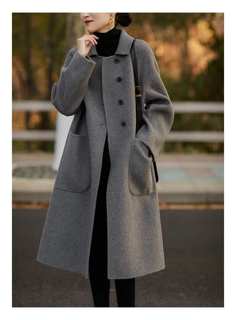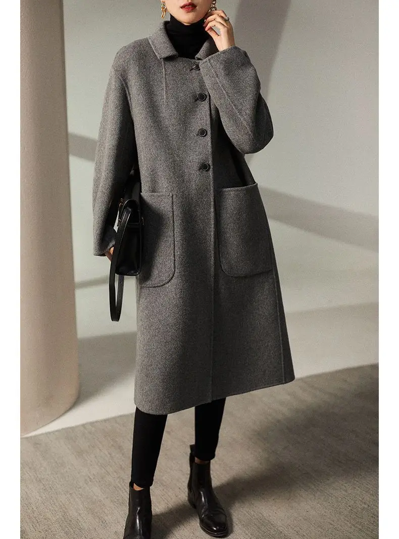 Solid Button Pockets POLO Collar Long Sleeve Outerwear Elegant Fashion Harajuku Female Clothes Loose Casual All Match Overcoat