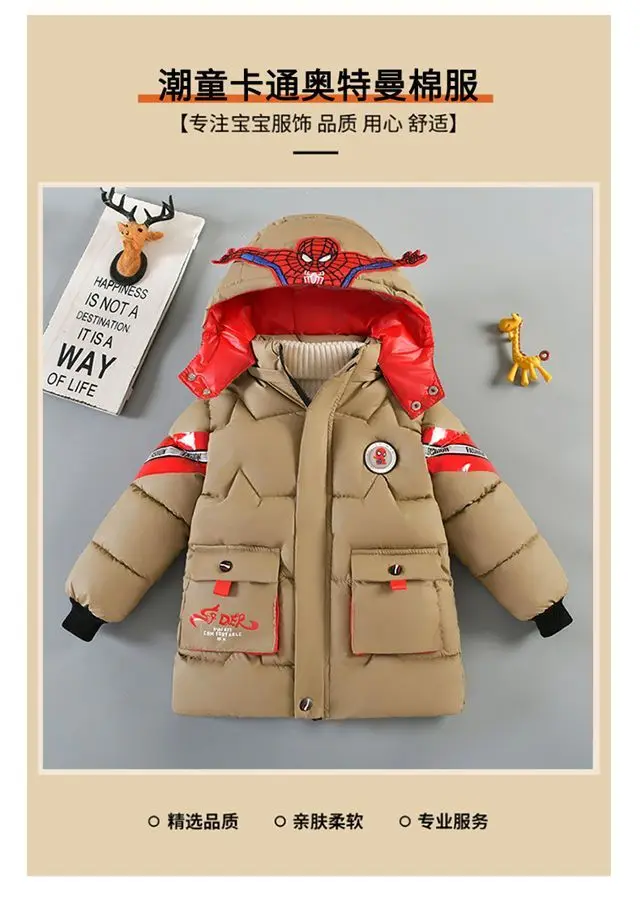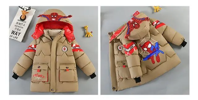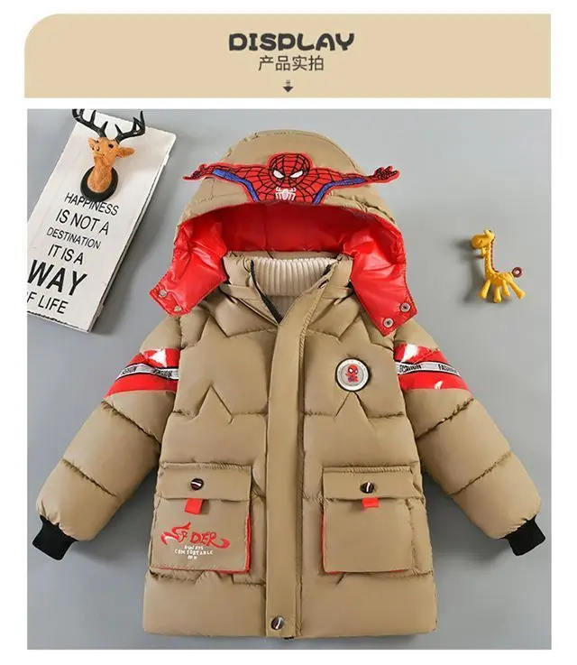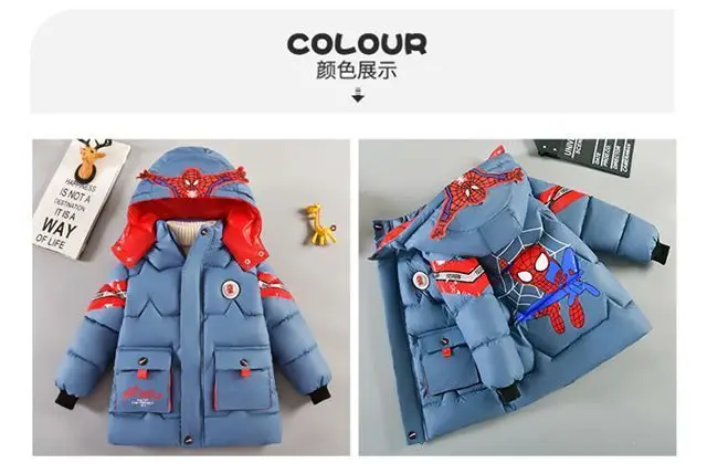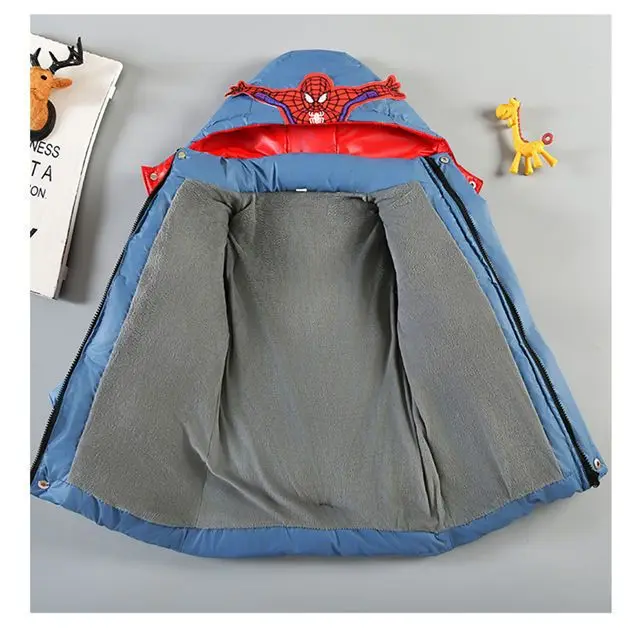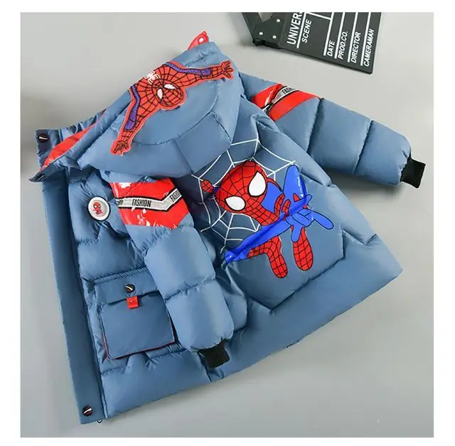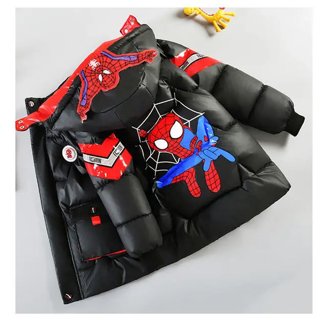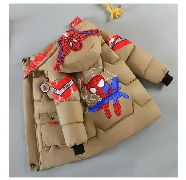 Spiderman Down Jacket 2025 Winter Kids Coat – Hooded Cotton-Padded Parka