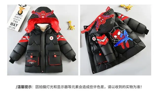 Spiderman Down Jacket 2025 Winter Baby Boy Costume Kids Warm Thicken Cotton-Padded Hooded Coat Parka Children Clothing Outerwear