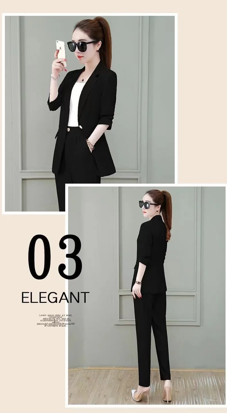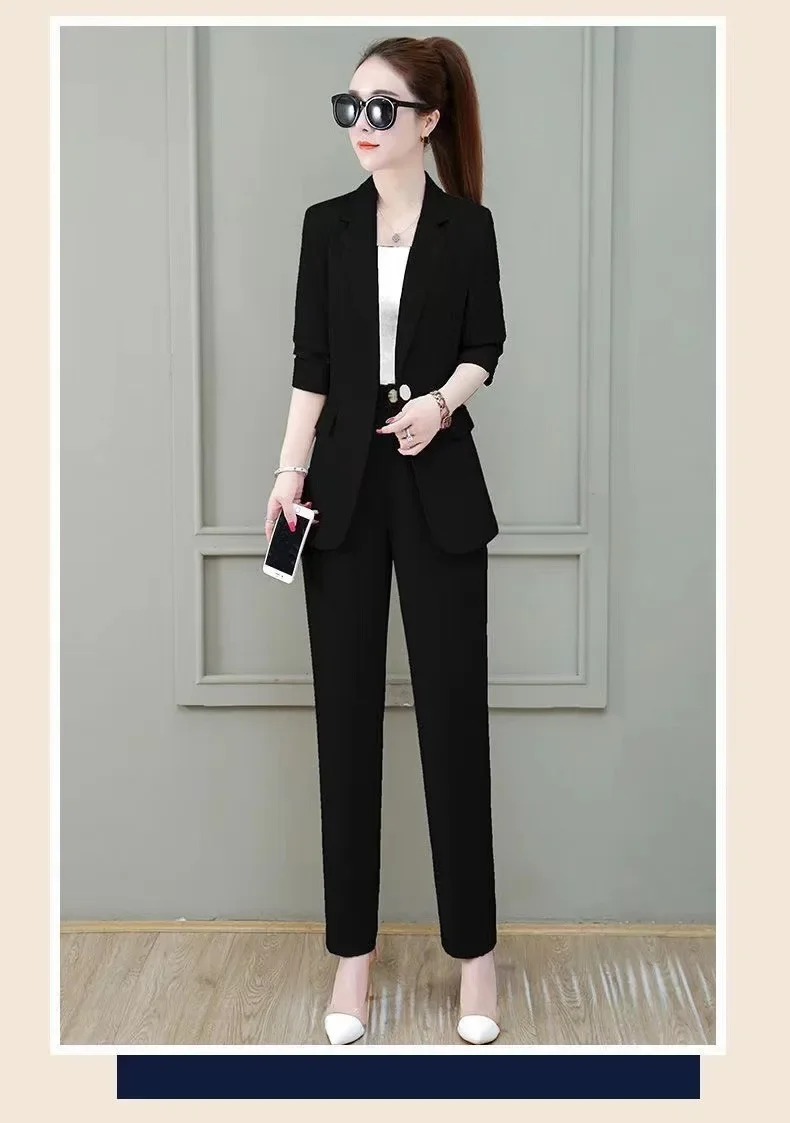 • Three-Piece Business Wear: The three-piece set includes a jacket, top, and pants, making it a versatile and complete business wear outfit.