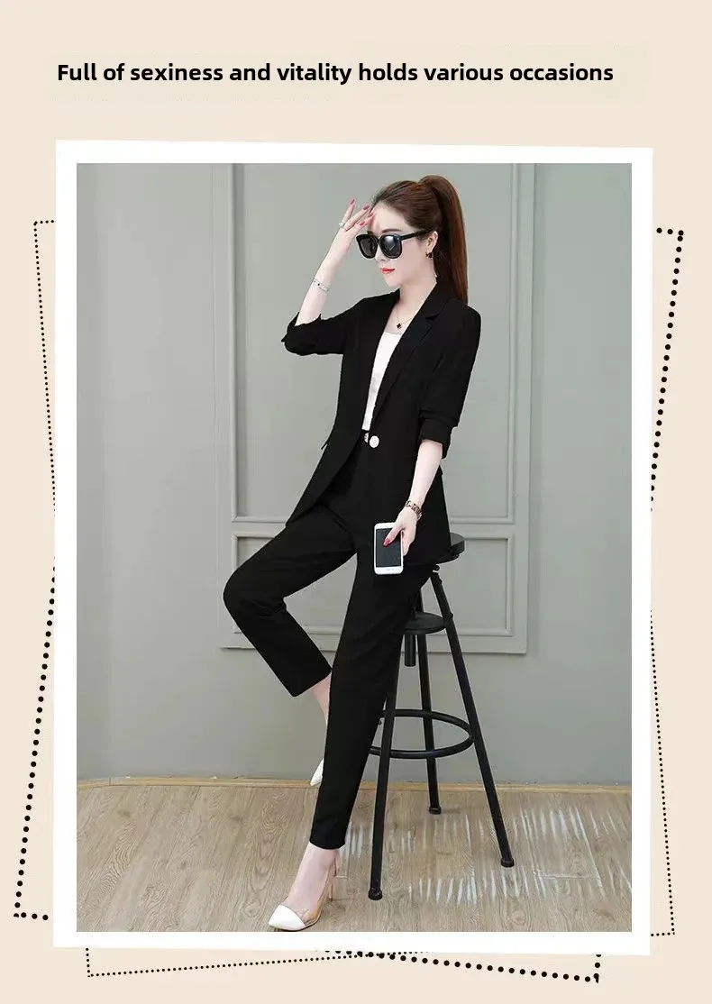 Spring Autumn Korean-Style 3-Piece Women's Suit Set with Sunshade Jacket