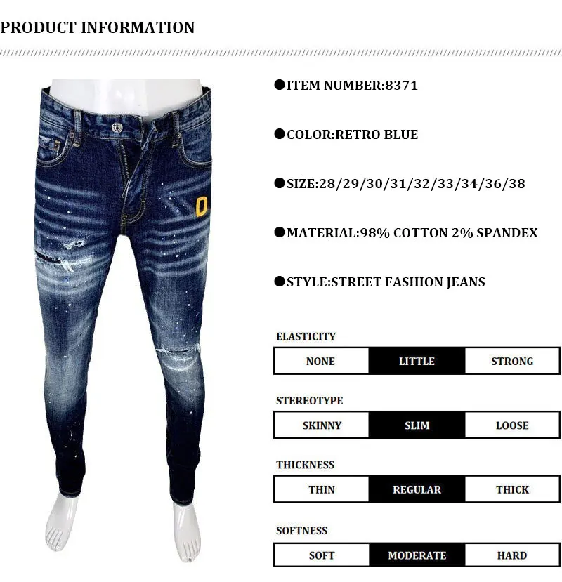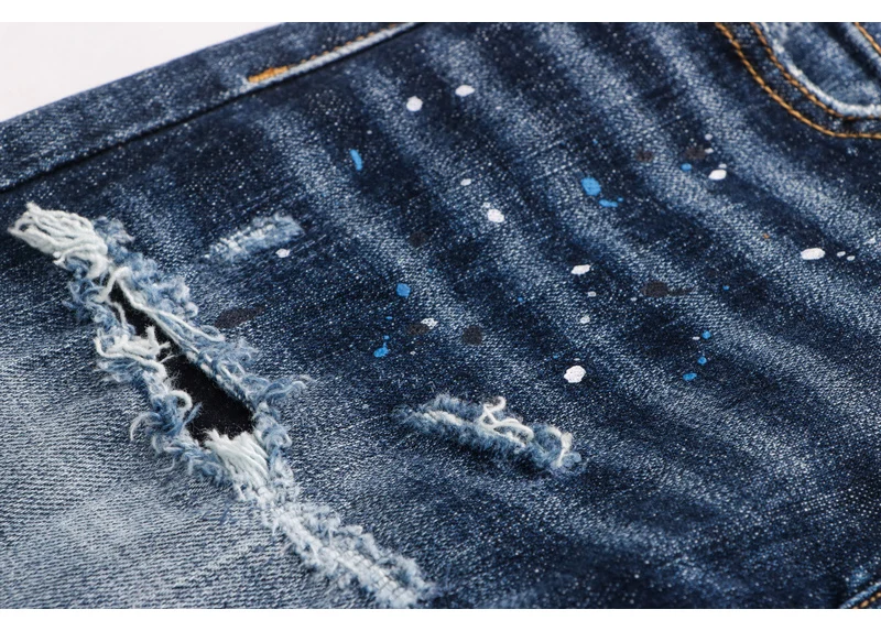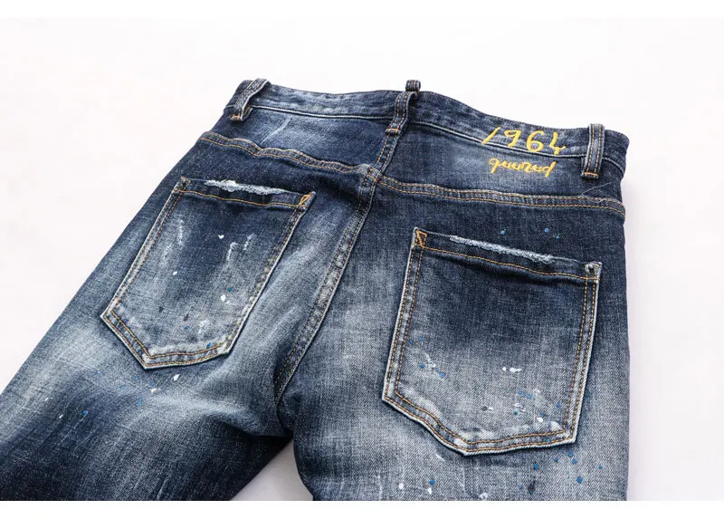 Street Fashion Men Jeans High Quality Retro Blue Elastic Slim Fit Ripped Jeans Men Embroidery Designer Denim Brand Pants Hombre
