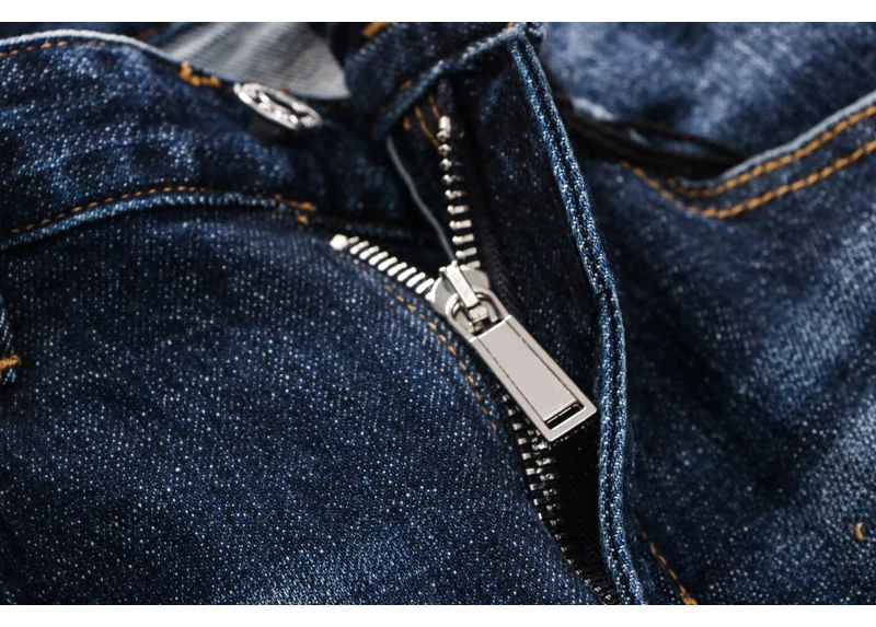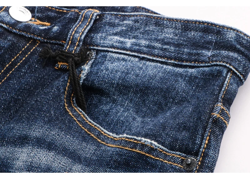 Street Fashion Men Jeans – Retro Blue Slim Fit Denim with Embroidery