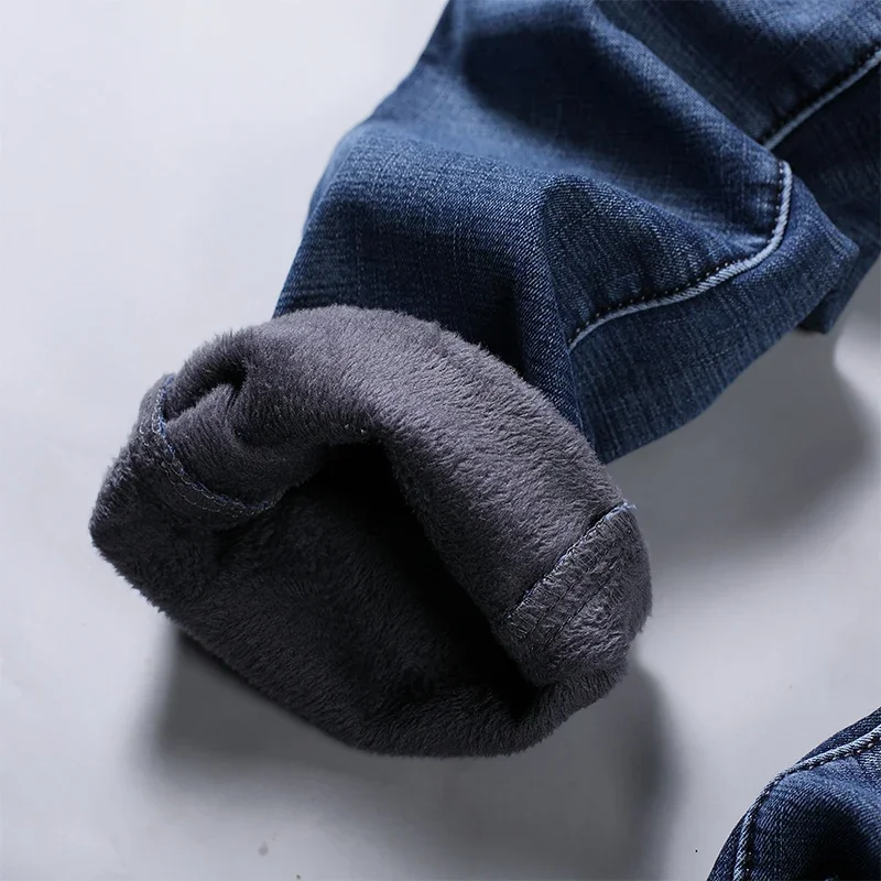Winter Thermal Fleece-Lined Denim Jeans for Men