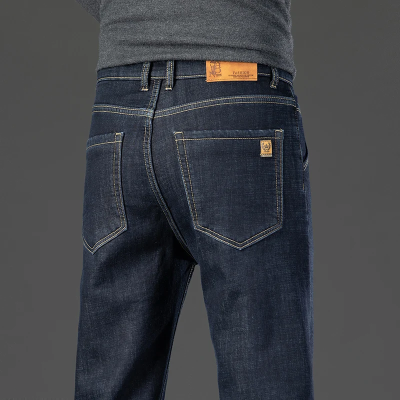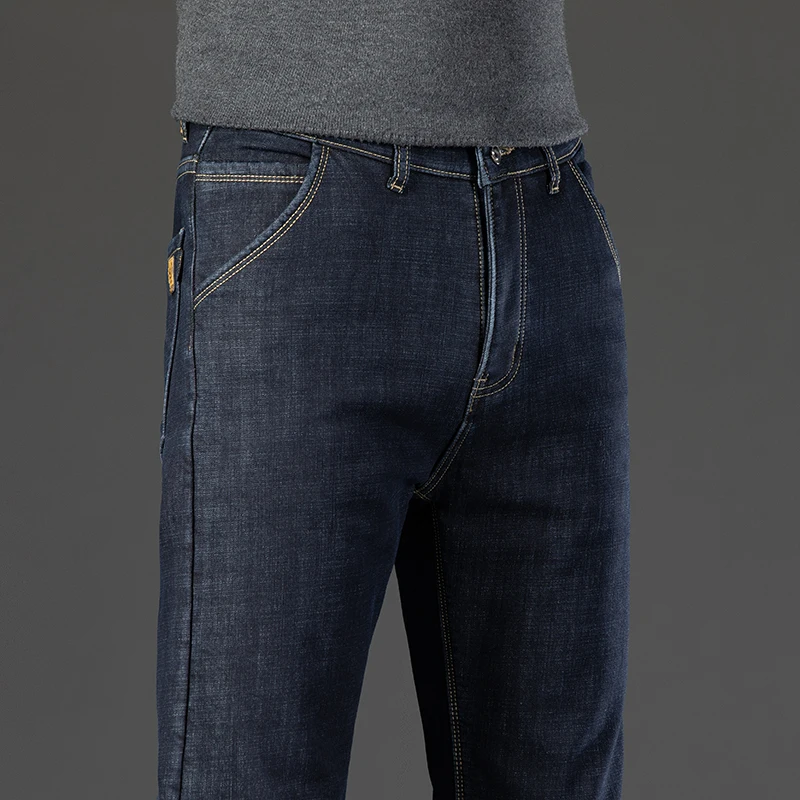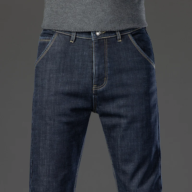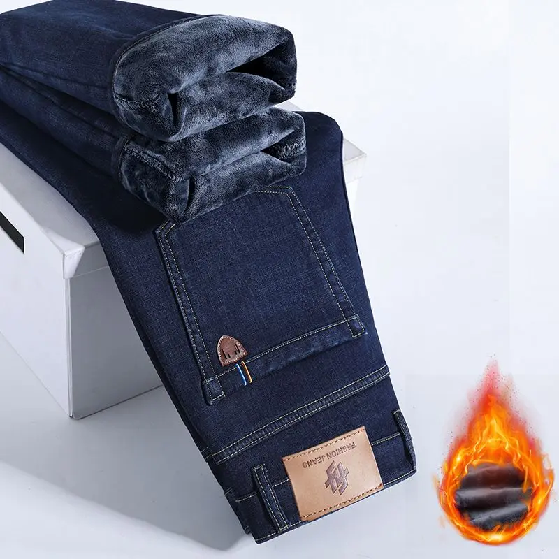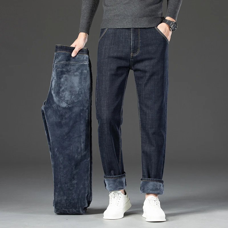 Winter Warm Fleece Jeans Men's Thick Thermal Casual Straight Denim Pants Male Business Work Stretch Trousers New Clothing