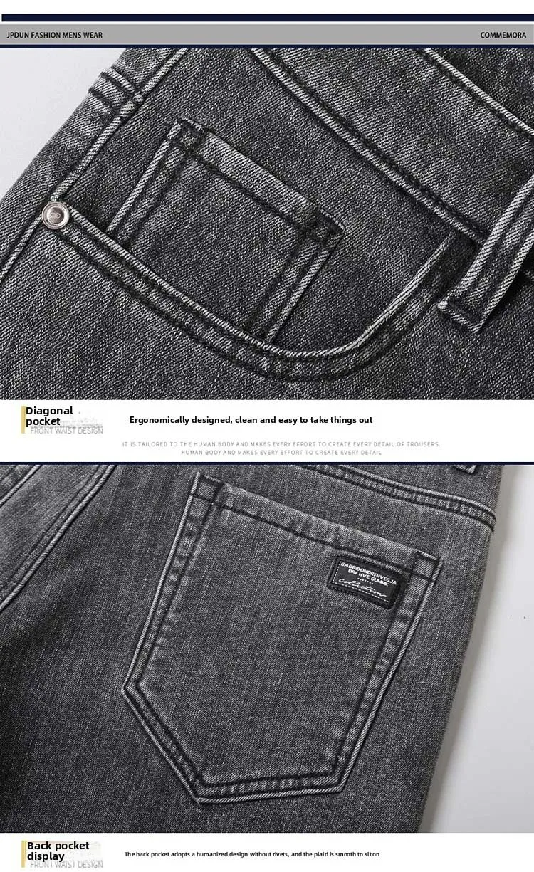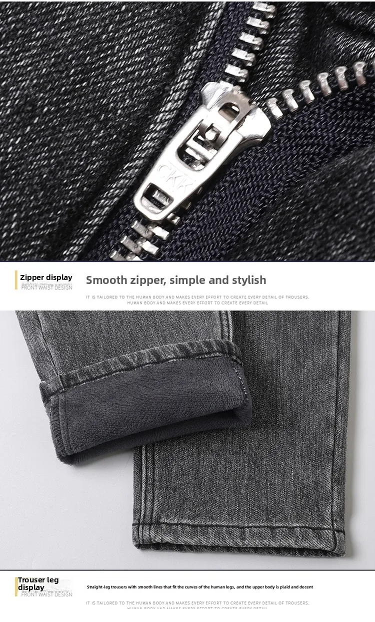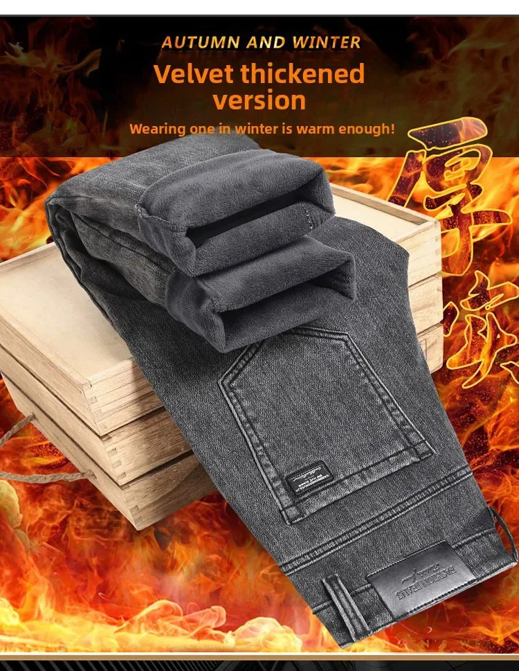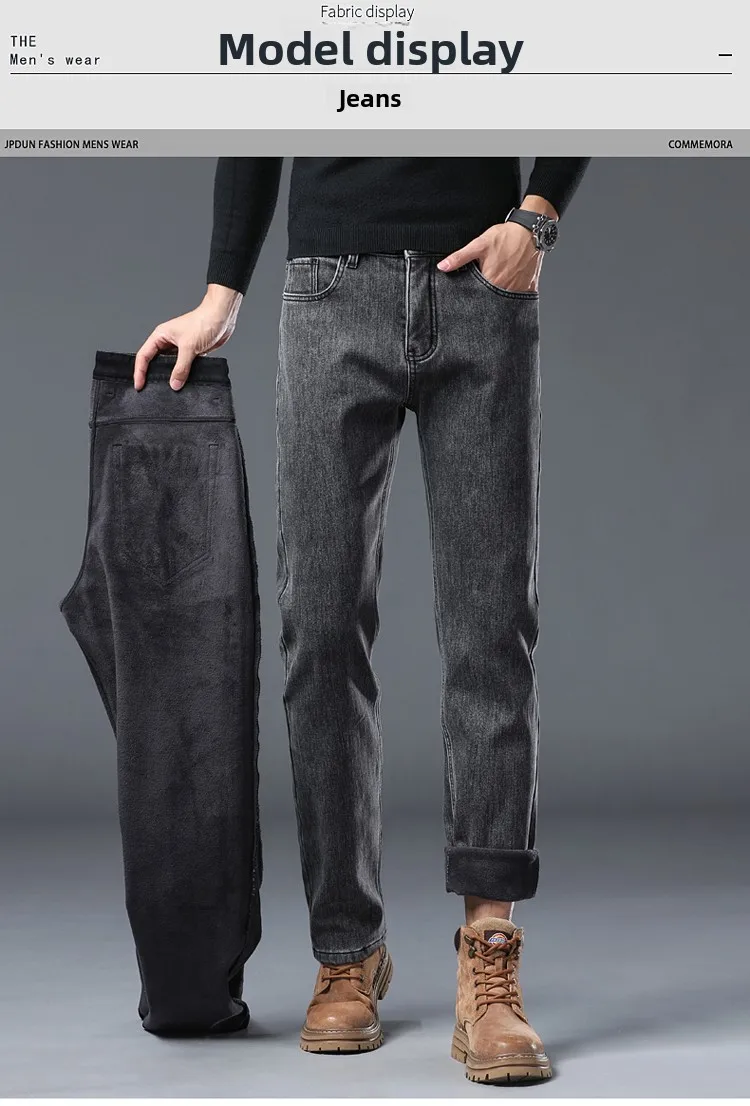 Winter Warm Jeans Men's Slim Straight Elastic Denim Pants Casual Male Clothing Fashion Plush Trousers New Hot Sale Fashion Jeans