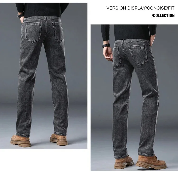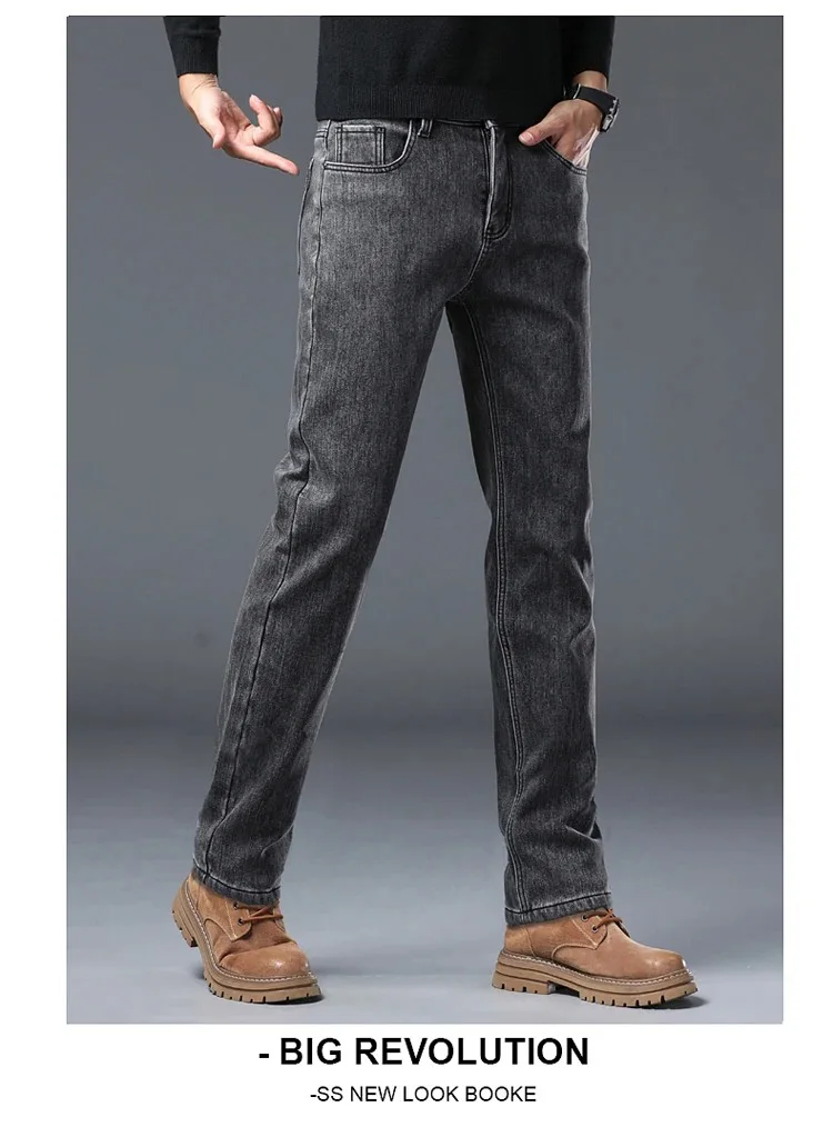 Winter Warm Jeans for Men — Slim Straight Denim with Plush Fleece