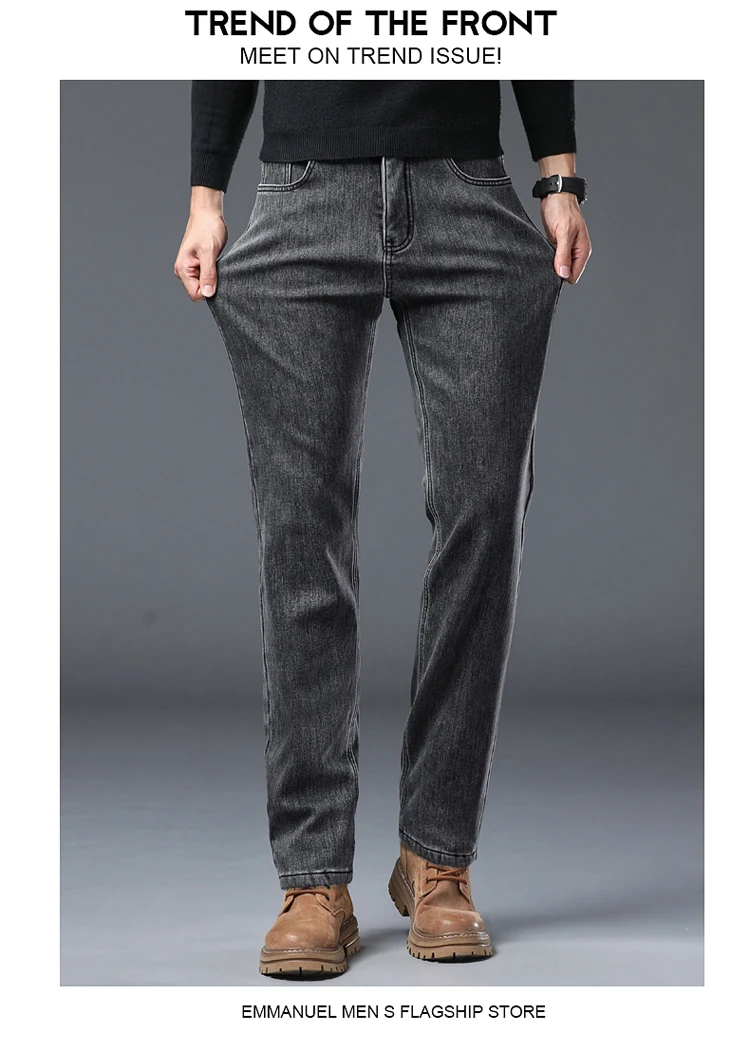 These winter-ready jeans are designed for men who want casual, comfortable style with extra warmth. Featuring denim fabric with a plush fleece lining, they deliver a modern slim-straight silhouette and reliable warmth for autumn and winter.