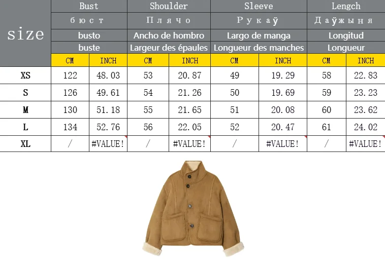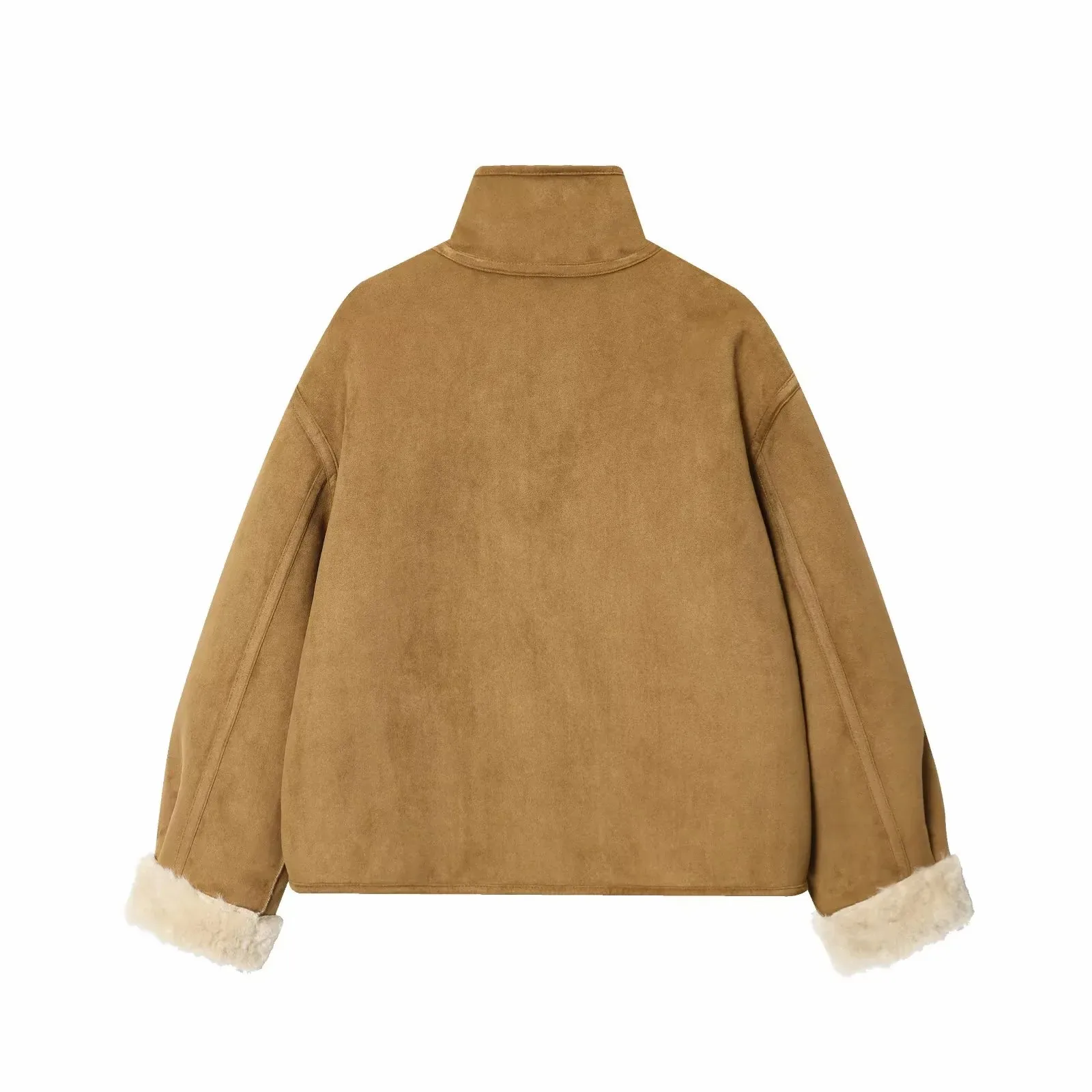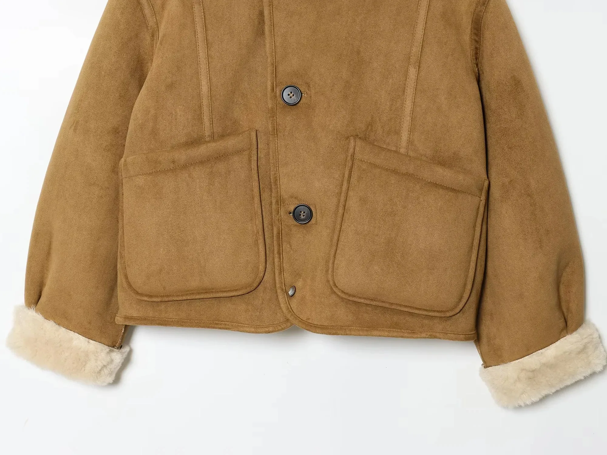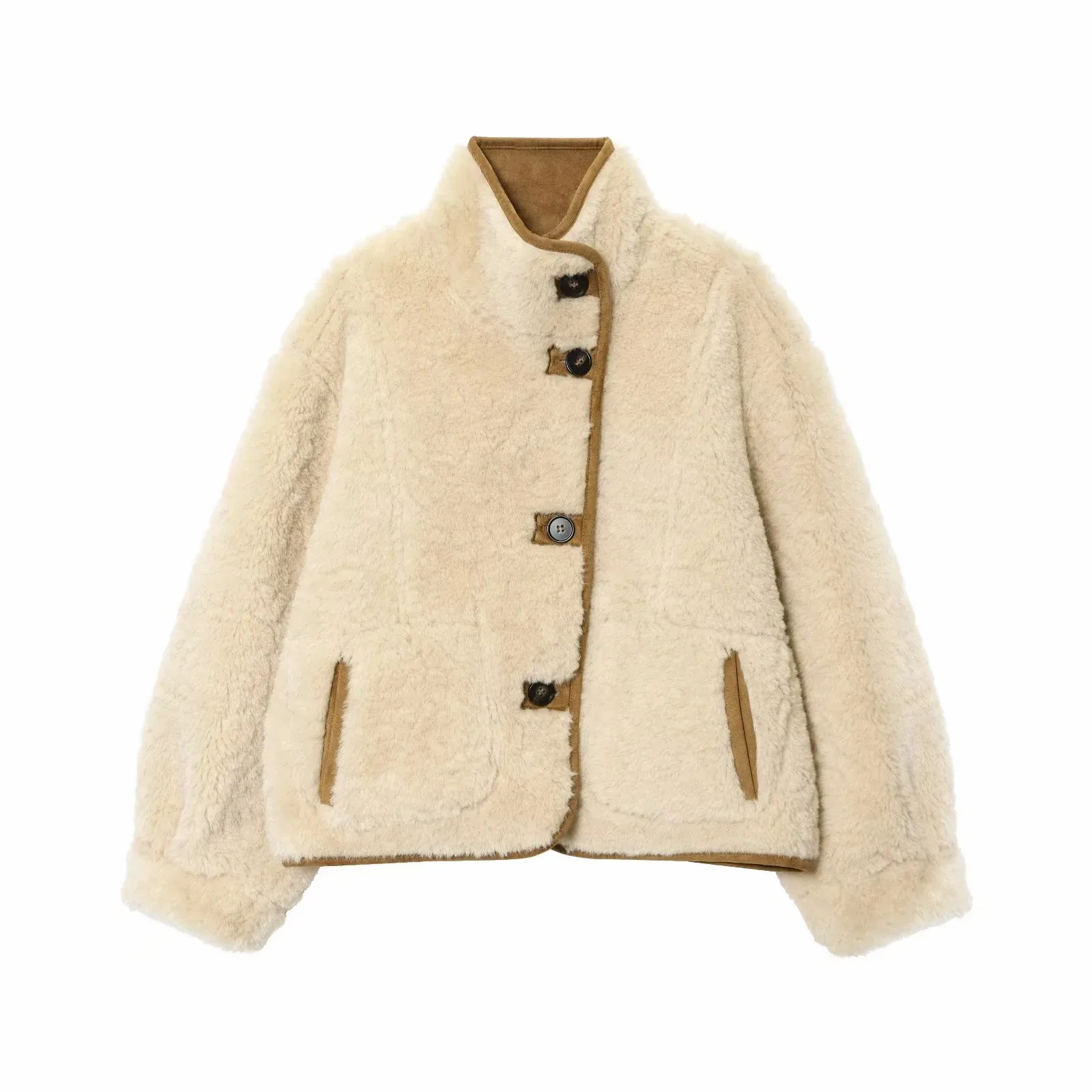 Women 2025 Double-Sided Wear Lamb Velvet Coat Women's Fashion Stand Collar Single Breasted Pocket Short Jacket Lady Outerwear