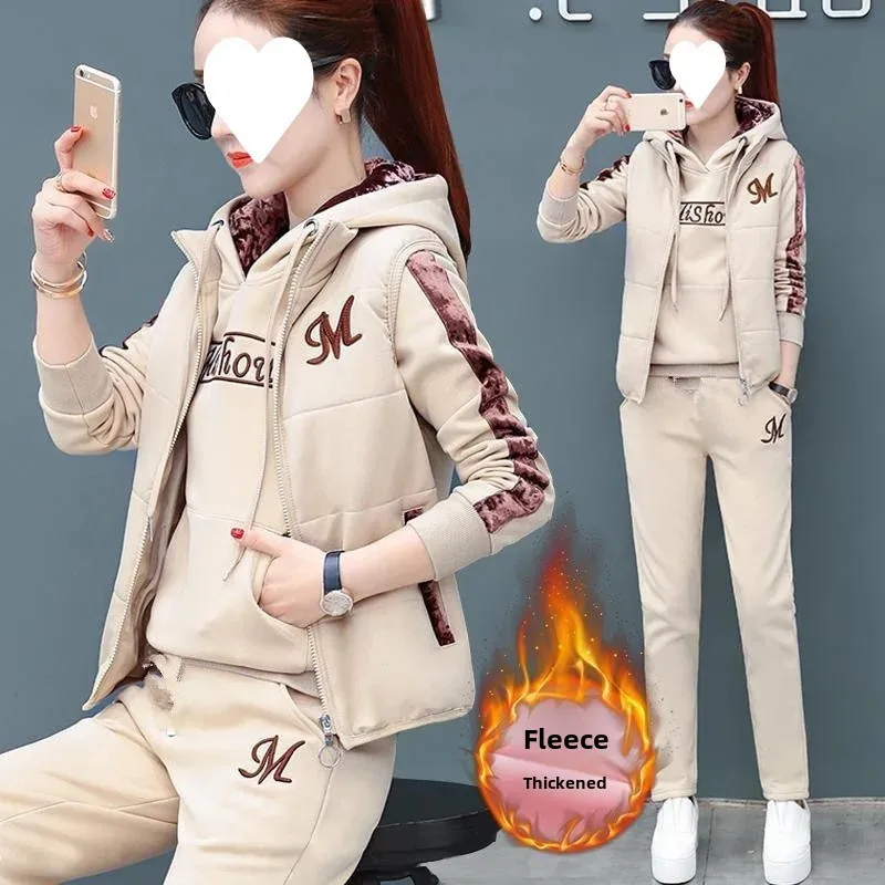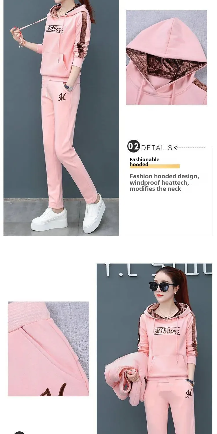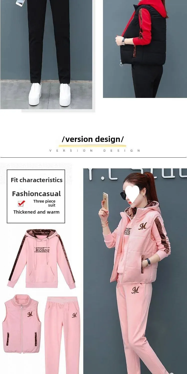 Women's Autumn Winter 2023 New Plus Size Casual Three-Piece Set Fleece-Lined Thickened Sportswear Sweatshirt