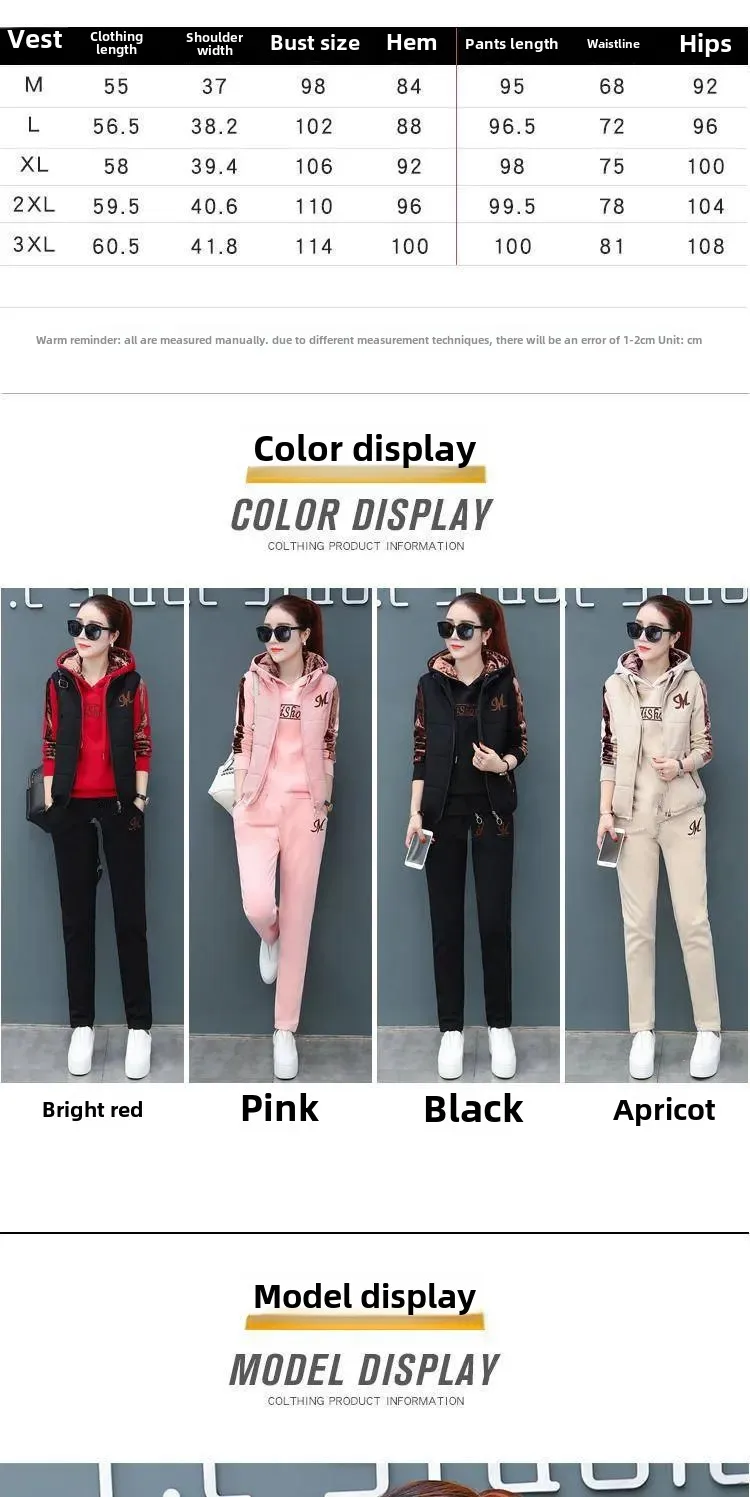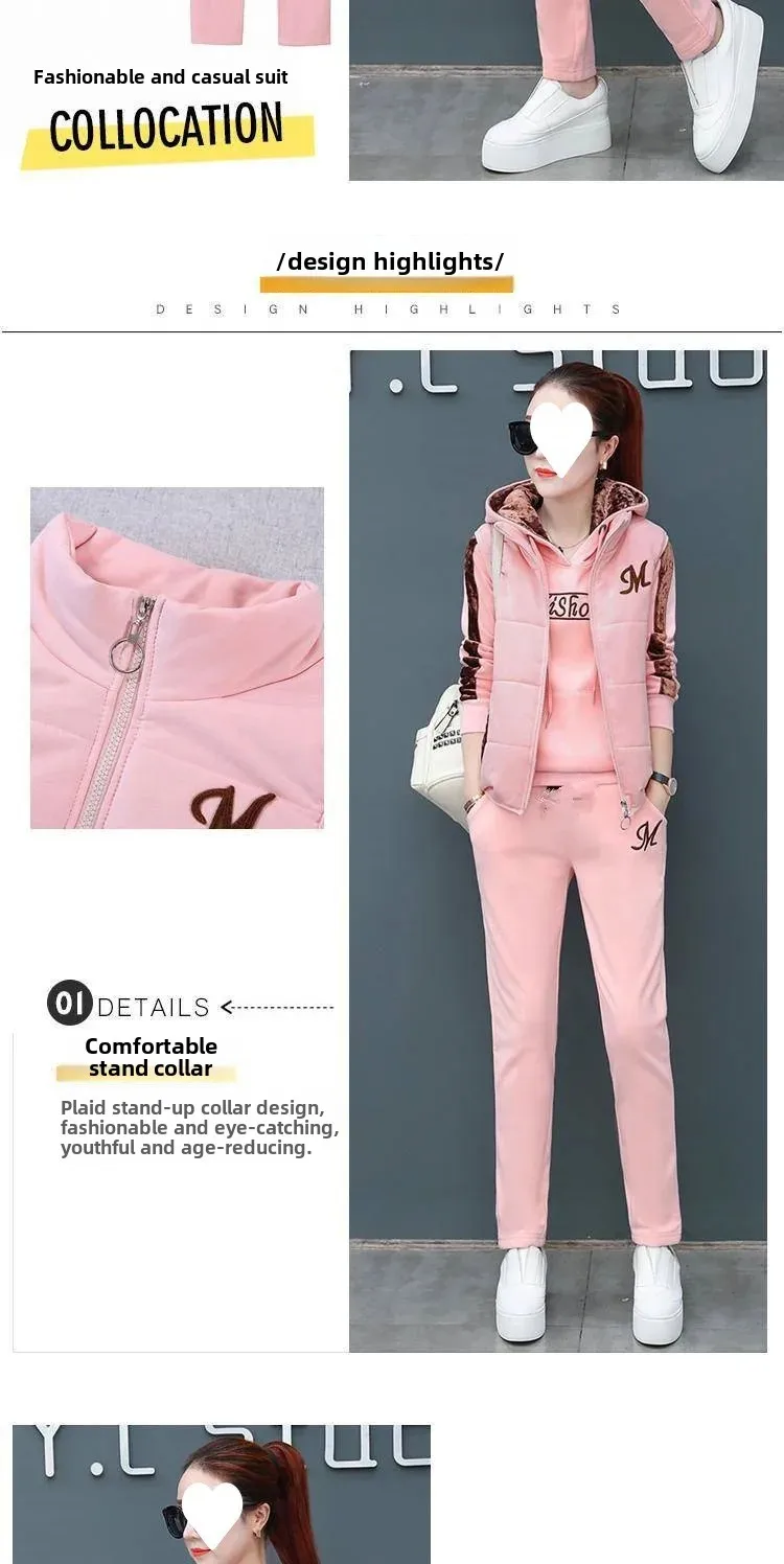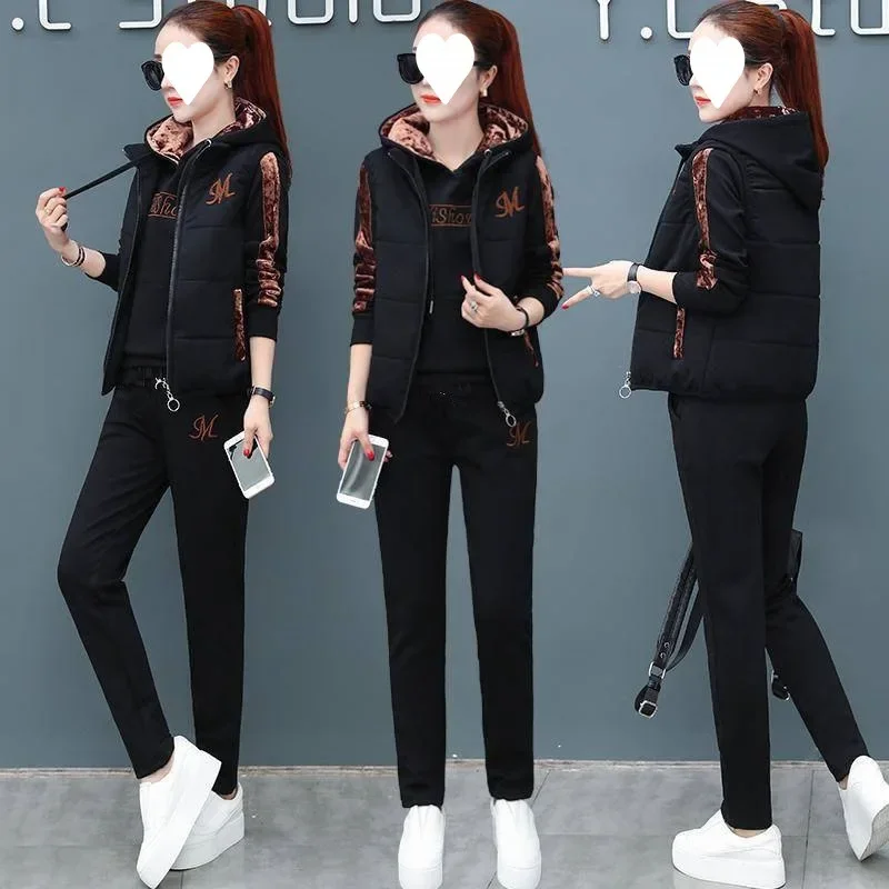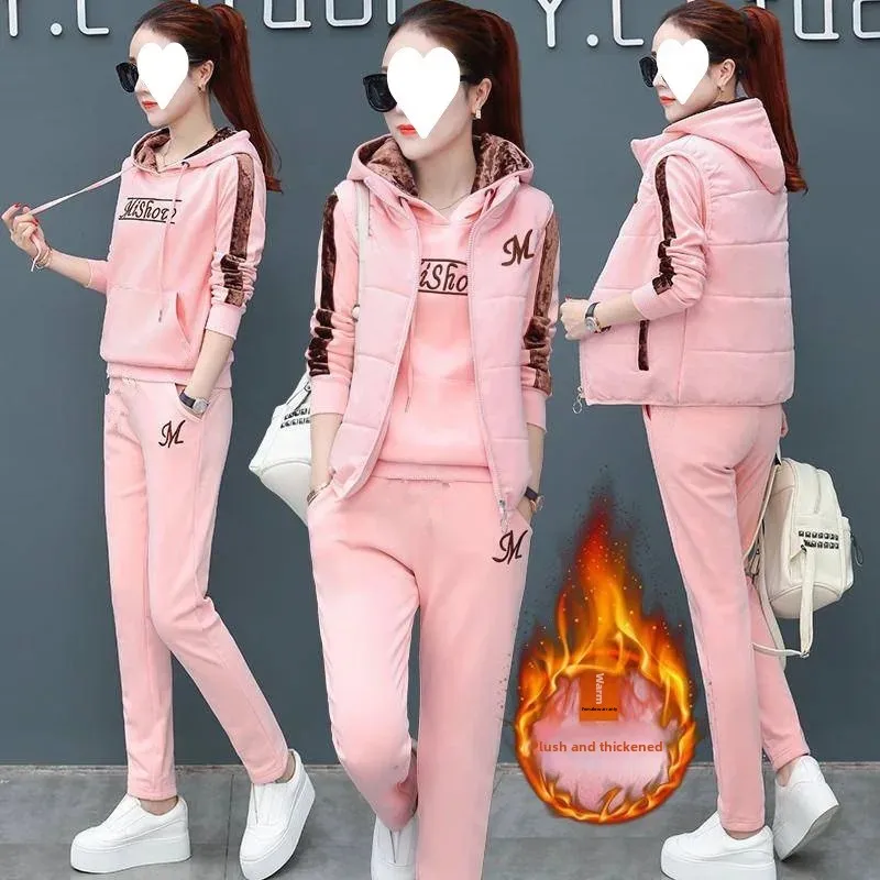 Women's Autumn Winter 2023 New Plus Size Casual Three-Piece Set Fleece-Lined Thickened Sportswear Sweatshirt