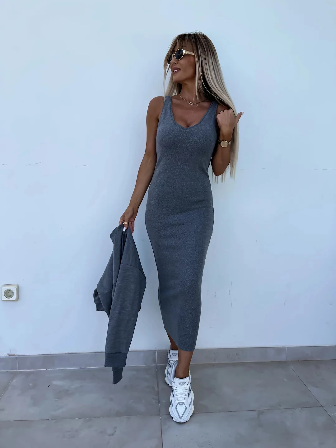 Enjoy effortless styling with a coordinated two-piece set that moves with you. The stretchy knit fabric provides comfort and flexibility for daily wear, work, or casual outings, while the slim-fitting dress offers a flattering silhouette without sacrificing ease of movement.