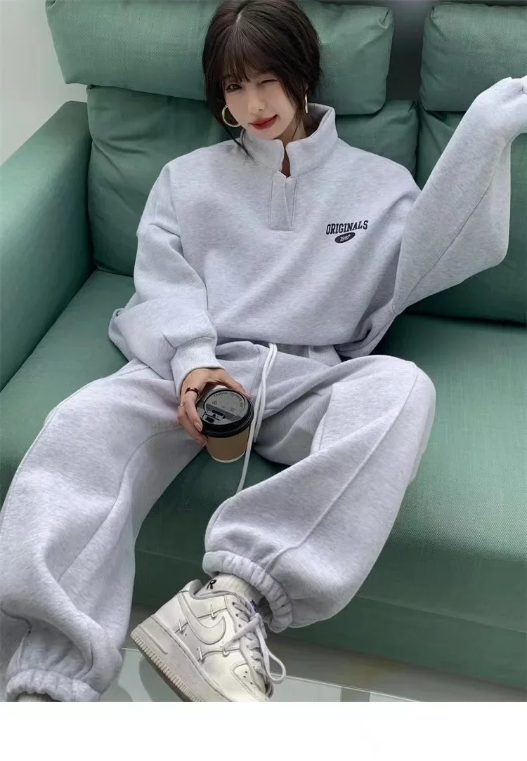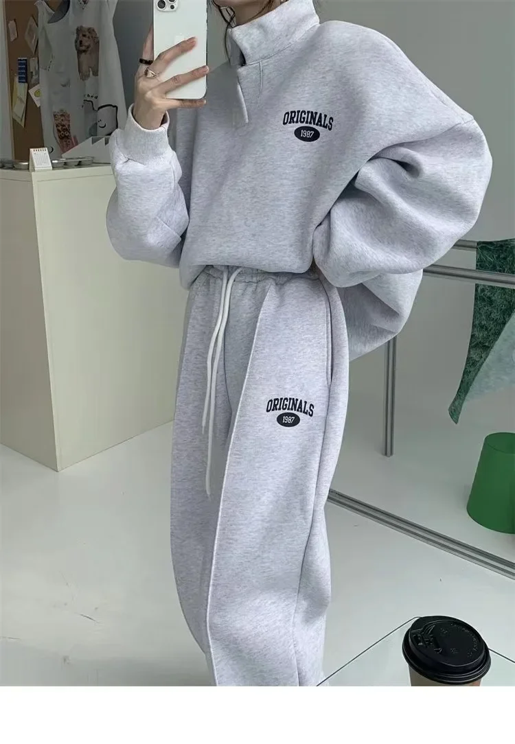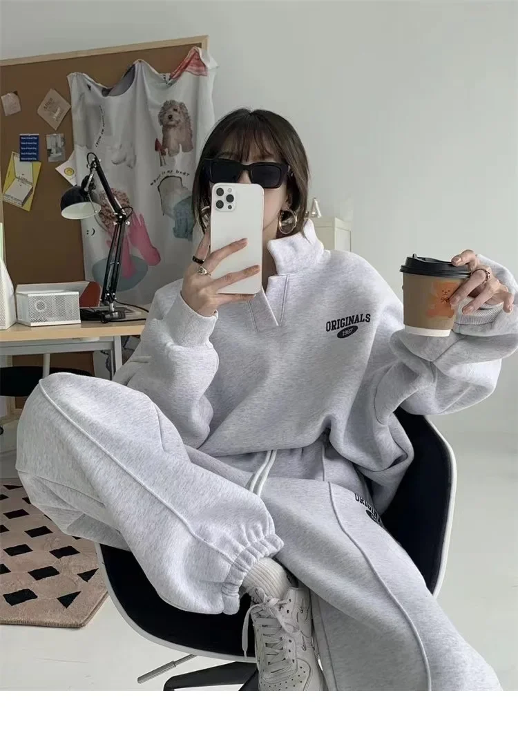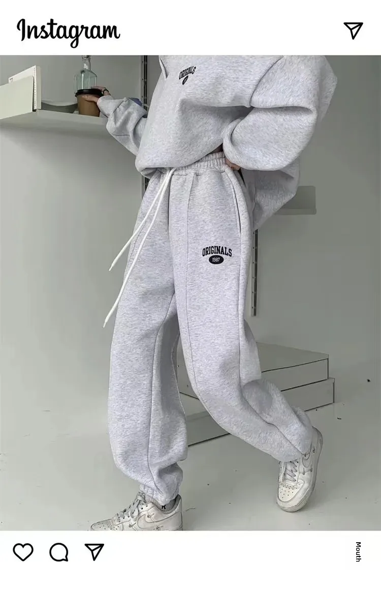 Women's Fleece Lined Hoodie And Pants Set Casual Sportswear For Running Autumn Winter New Fashion Street Style Two Piece Outfit