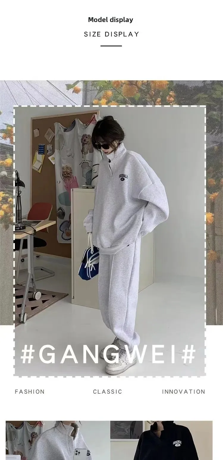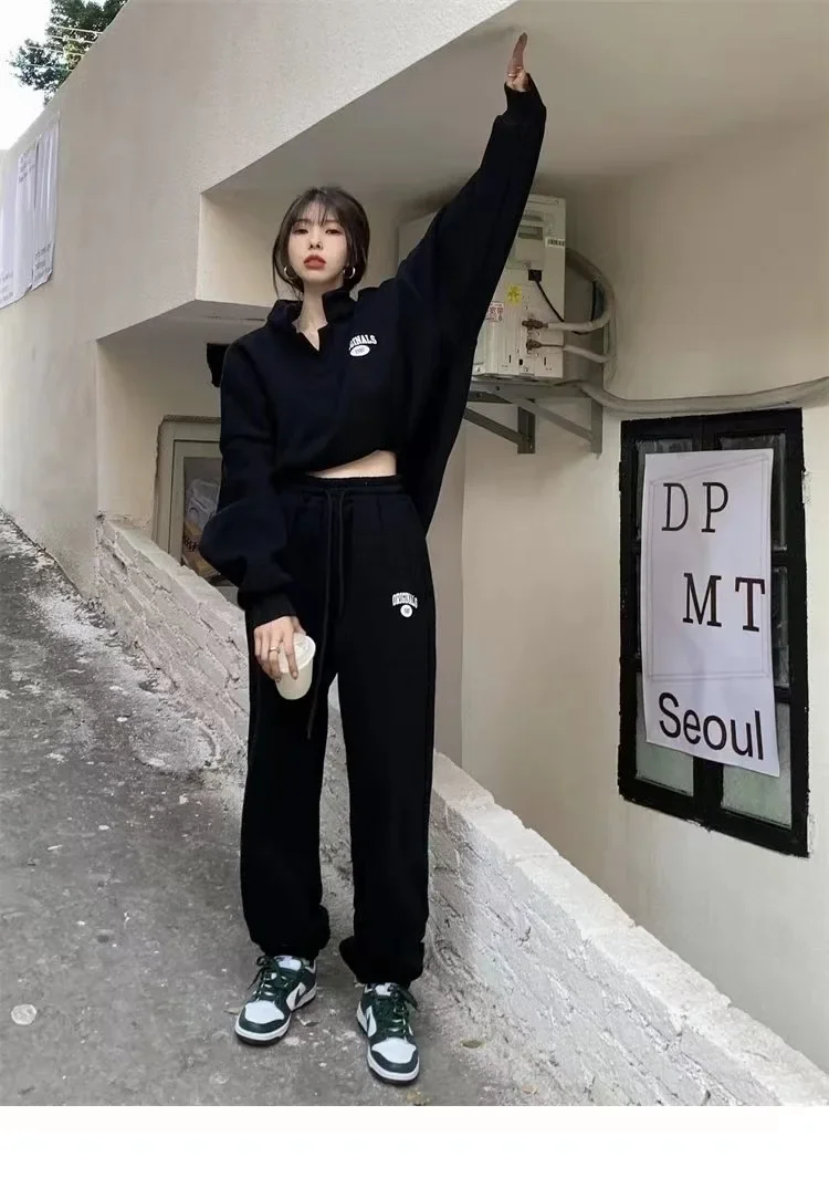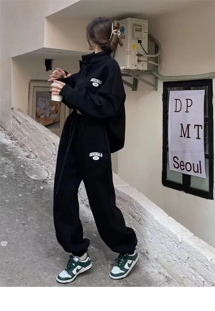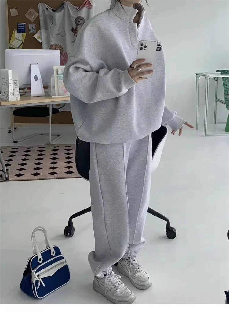 Women's Fleece Lined Hoodie And Pants Set Casual Sportswear For Running Autumn Winter New Fashion Street Style Two Piece Outfit