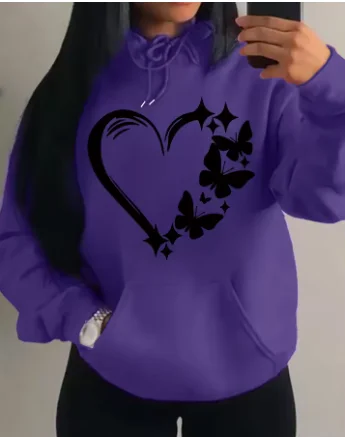 Discover a stylish women's hoodie that blends bold print with everyday comfort. Designed for streetwear enthusiasts, it combines a retro multi-color love-and-butterfly design with a cozy fleece feel for autumn and winter days.